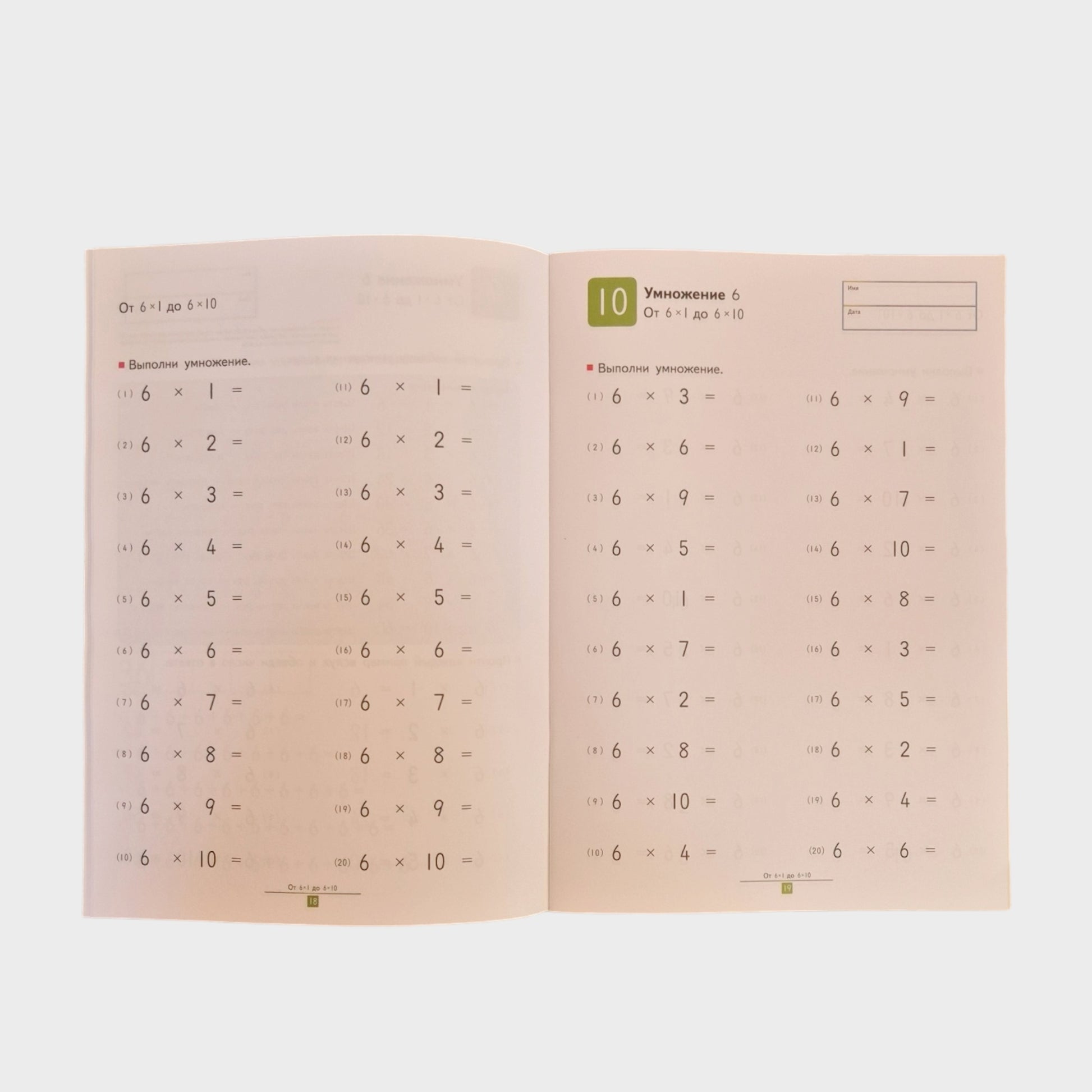 - В этой тетради собраны примеры, которые помогут вашему ребенку освоить умножение чисел от 6 до 10.