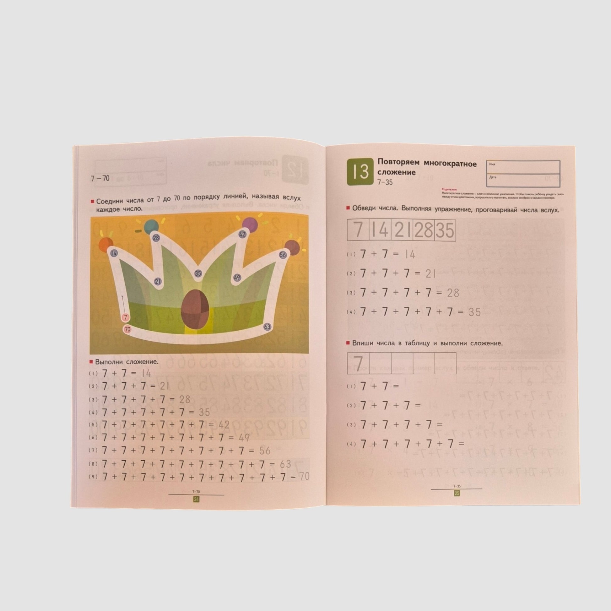 Метод KUMON основан на многократном выполнении однотипных заданий, которые, постепенно усложняясь, позволяют ребенку без труда освоить и закрепить приобретенные навыки. Двигаясь вперед небольшими шажками, ваш ребенок, несомненно, добьется успеха в освоении предлагаемого учебного материала.