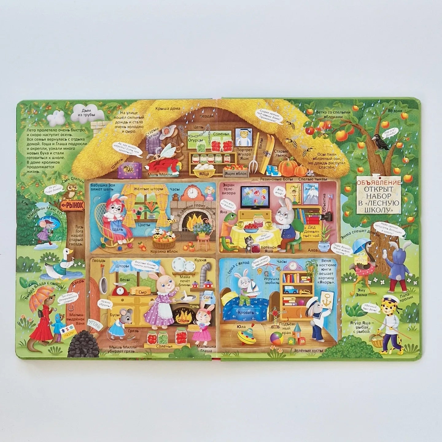 - Стильные, яркие и детальные картинки на каждой странице – книгу можно рассматривать как виммельбух