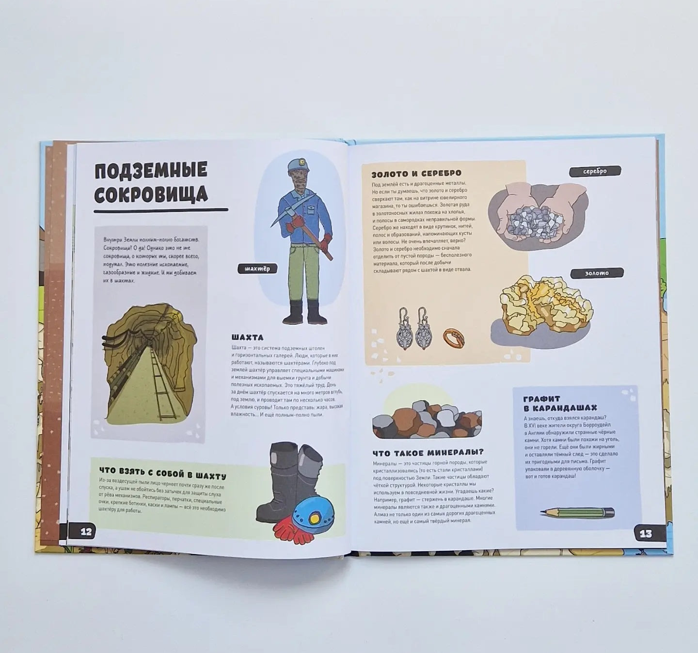 Что скрыто там, куда мы не можем заглянуть? Зачем нужна почва? Сколько лет нашей планете? Какие сокровища скрыты в недрах Земли? «Большая книга подземного мира» — кладезь полезной информации, занимательных фактов и увлекательных историй. В ней юные исследователи найдут ответы на множество вопросов из области геологии и археологии, истории и мифологии. Под каждой большой иллюстрацией скрывается ещё одна, секретная, на которой вы увидите, как устроены пещеры и кто живёт под землёй, как работают на шахтах, а также узнаете, что в городах под землёй, помимо метро и парковок, есть ещё и спортивные центры и музеи. Раскрывайте скорее — вас ждёт захватывающее путешествие прямо к центру Земли.