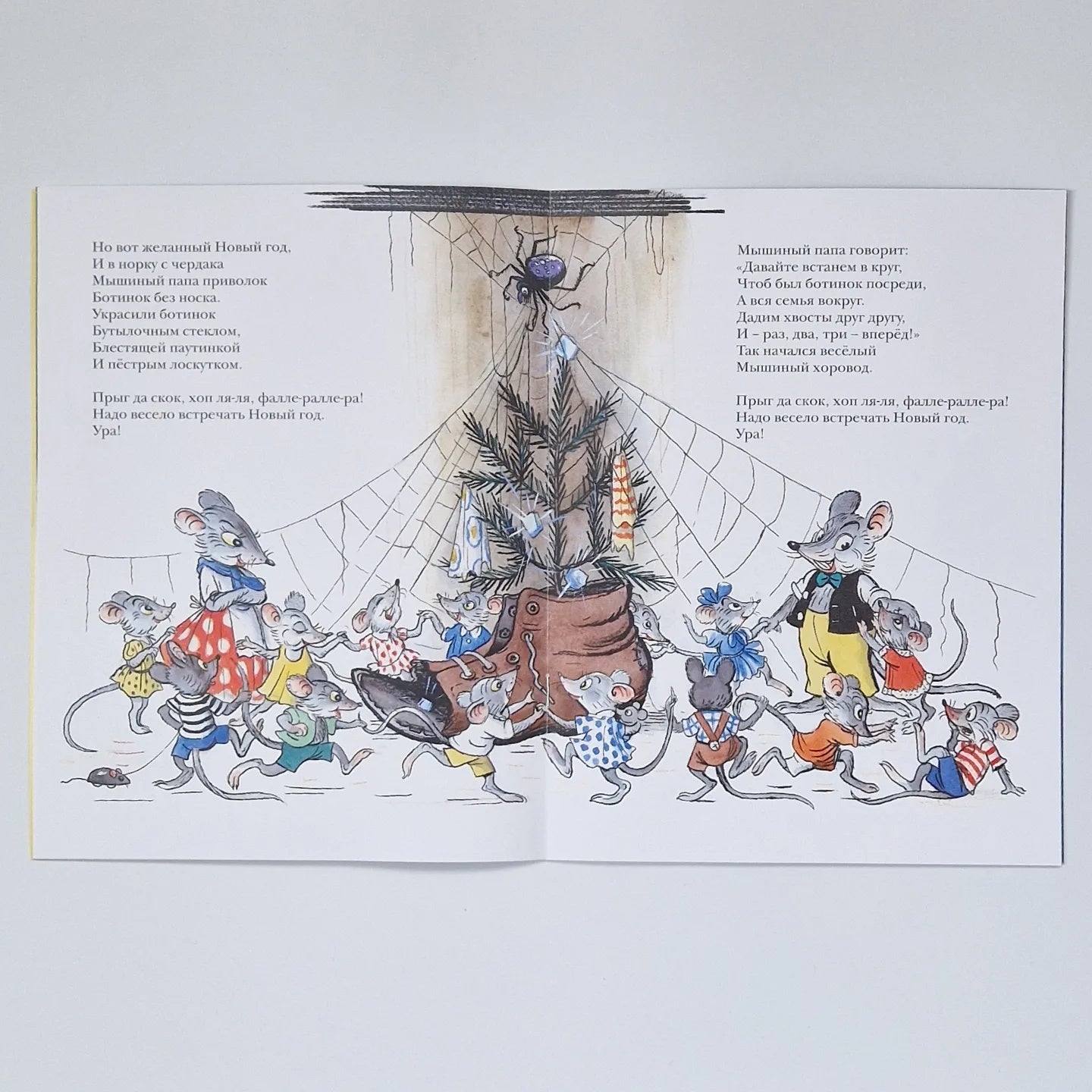 Добрая и весёлая сказка легко читается и быстро запоминается. А еще она необыкновенно хорошо иллюстрирована гениальным художником Владимиром Сутеевым. Мышиное жилище и семейные отношения нарисованы с великой любовью к деталям: генеральная предпраздничная уборка, скакалки, бантики, мышки-игрушки на верёвочке, ссора из-за кусочка колбаски, развешанные после стирки штанишки, платьица и маечки многочисленной мышиной детворы, ночной горшочек из ореховой скорлупы, заботливые мыши-родители и мудрая мышь-бабушка, сидящая на качалке-картофелине, и много-много других милых подробностей мышиного быта.