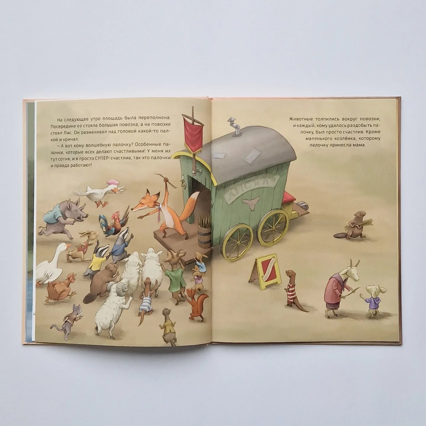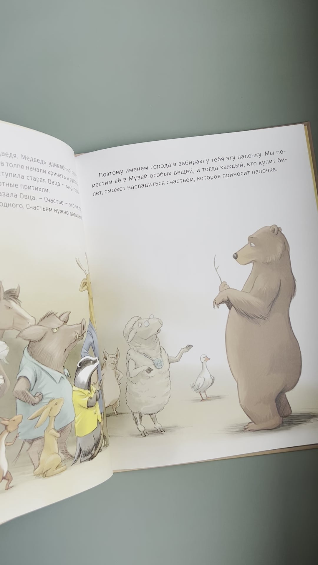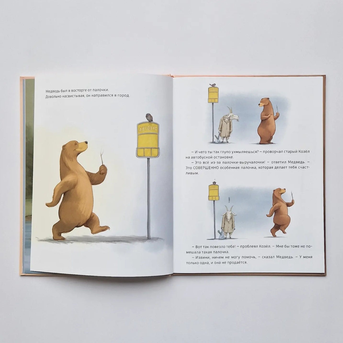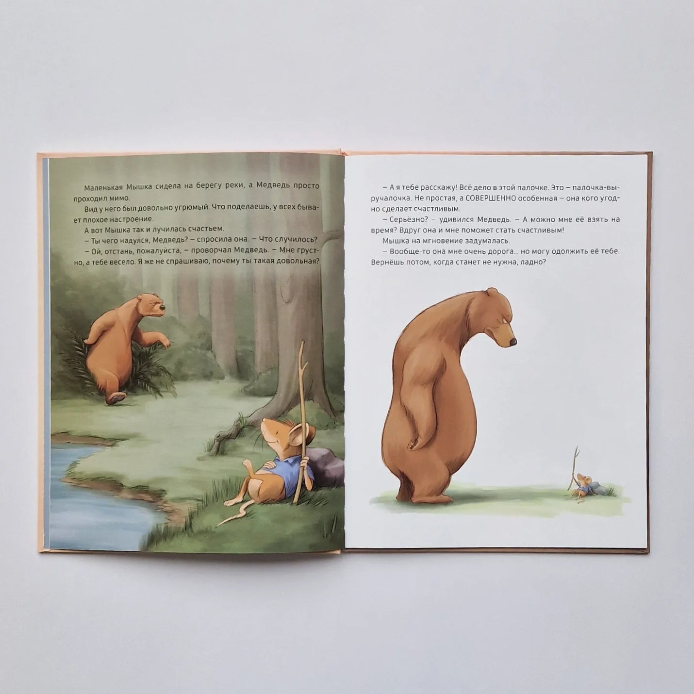 Встретились однажды очень грустный Медведь и очень счастливая Мышка. Почему же Мышка была так счастлива? Оказалось, что всё дело в совершенно особенной палочке, которая делает своего обладателя счастливым. Мышке стало жаль Медведя, и она одолжила ему палочку. И тут началось такое!!! Ведь Волшебная палочка понадобилась сразу всем зверям в городе…