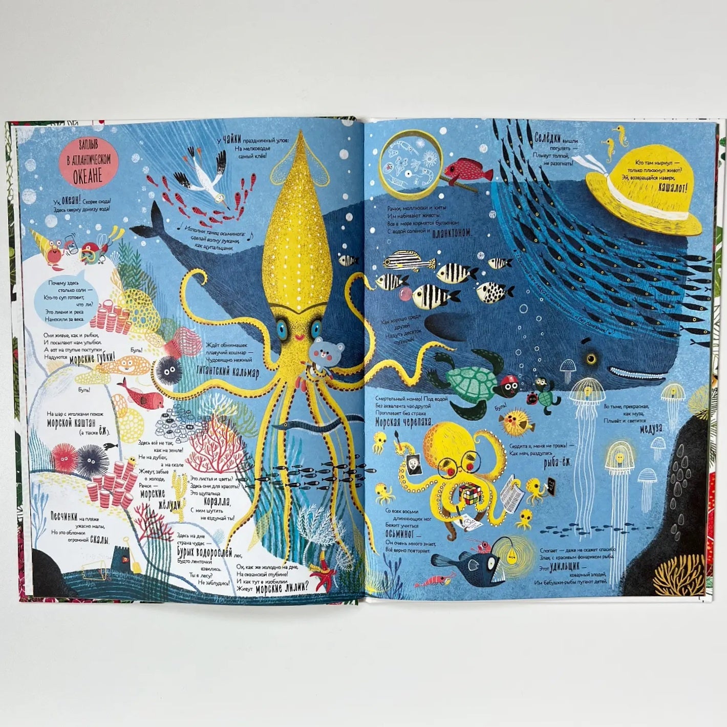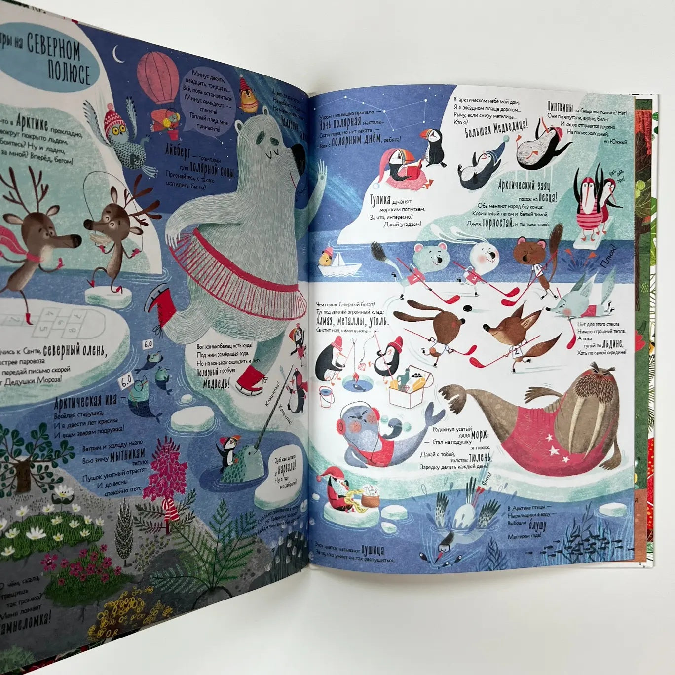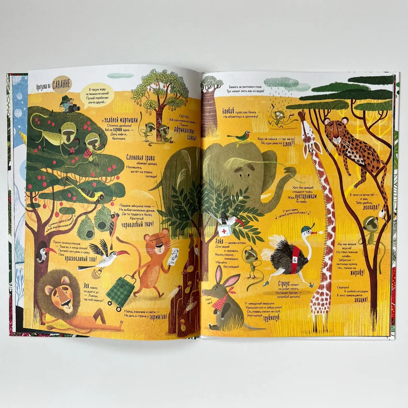 Открыв книгу, вы с ребенком отправитесь в увлекательное путешествие на Северный полюс, в саванну, в джунгли и в пустыню, побываете в лесу и огороде, погрузитесь в океан и поднимитесь в горы. Наконец, полюбуйтесь уникальными экспонатами в Музее чудес!