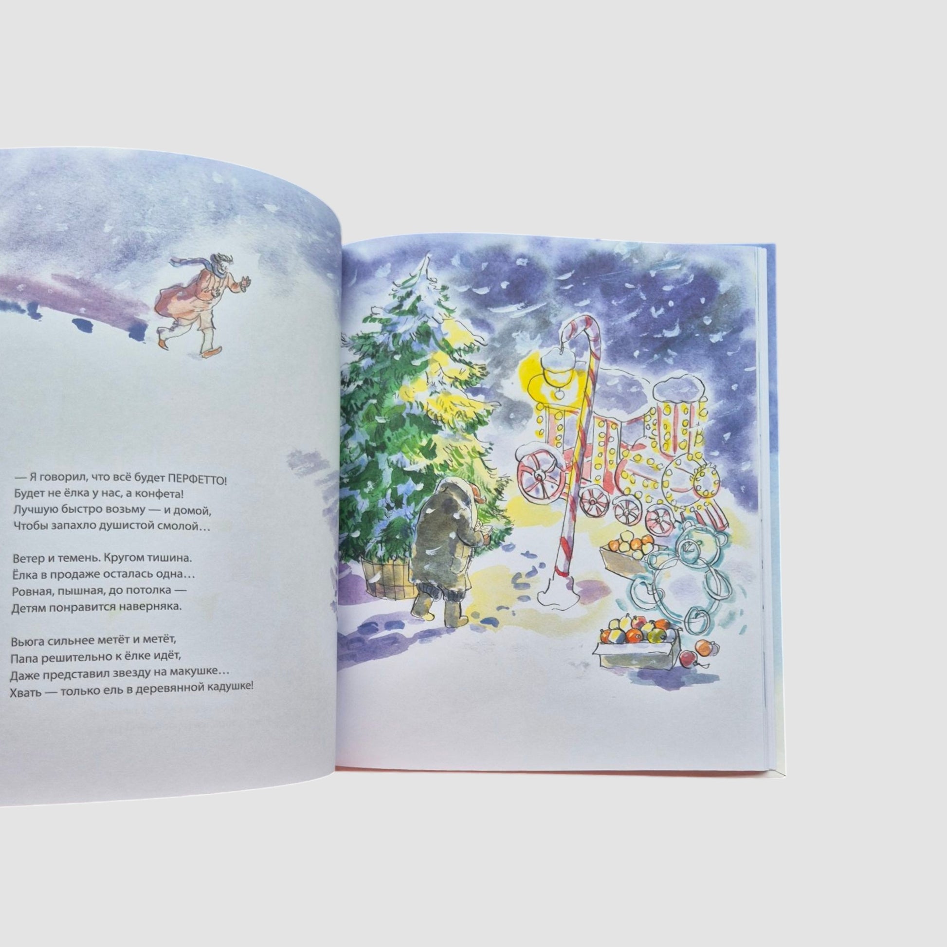 До Нового года считаные часы, а дома всё ещё не хватает главного — ёлки! Находчивый неунывающий папа отправляется на поиски. Но осталась ли в заснеженном городе хоть одна ёлочка? Сможет ли папа отыскать её и успеть к празднику?