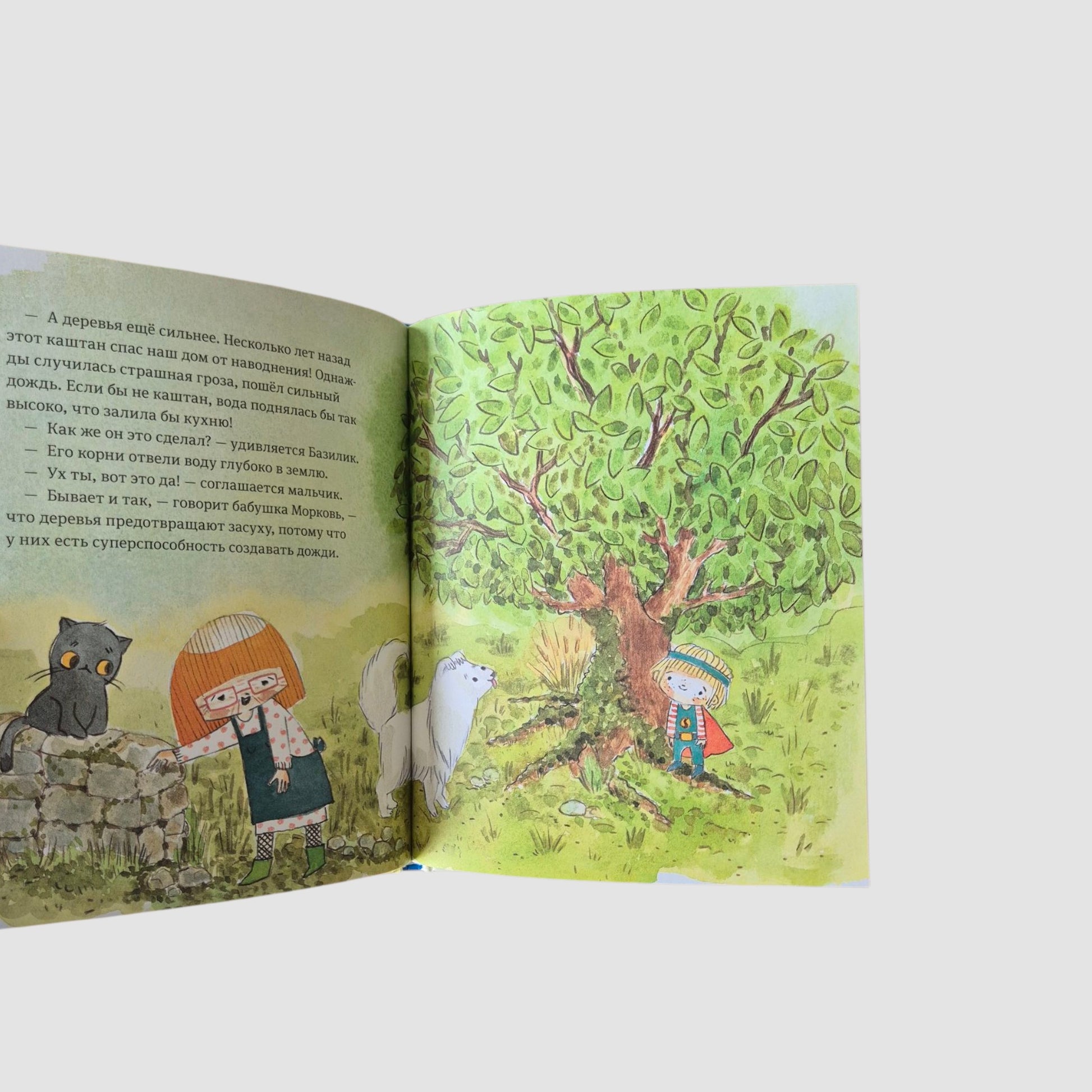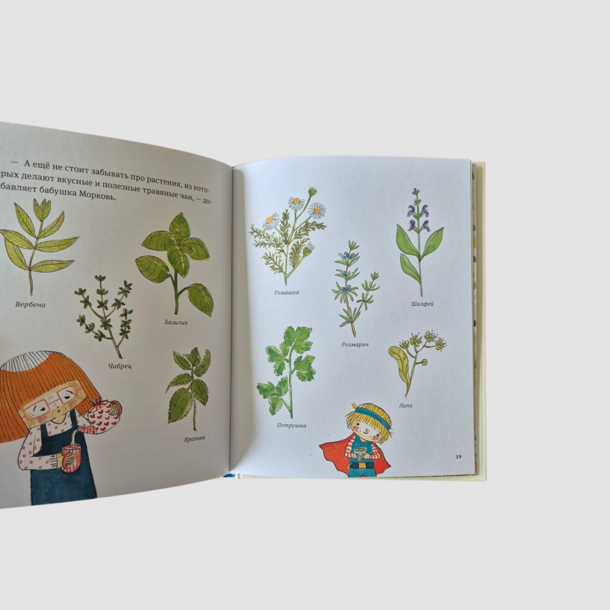 Серия "В саду Базилика" - это познавательные книги для самых маленьких об удивительном мире растений. Бабушка Морковь найдёт ответы на самые разные вопросы своего внука Базилика: могут ли растения любить, как у них появляются дети, какими способностями они обладают и что умеют. Сегодня Базилик - супергерой в крутом костюме. Он даже умеет летать! Ну, почти... Но в бабушкином саду главные супергерои - это растения. Они умеют лечить раны, защищать от непогоды и очищать воздух. Как именно? Бабушка Морковь сейчас расскажет! Особенности Крупный шрифт, трогательные и приятные иллюстрации, формат, который удобно держать в руках. Для кого Для детей от 4 лет, которые интересуются ботаникой, садоводством, растениями; для тех, кто только начинает изучать и познавать окружающий мир.