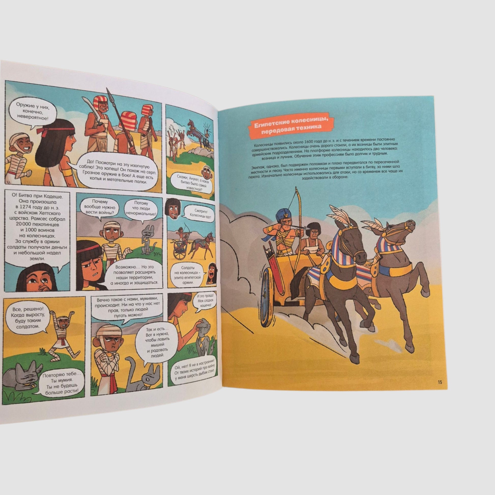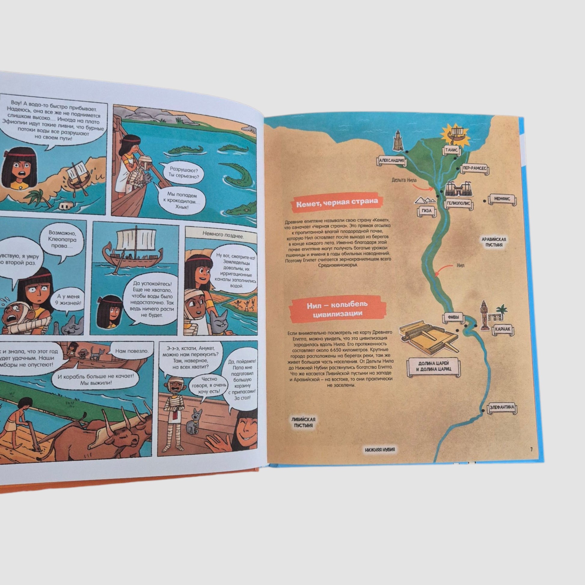 Добро пожаловать в Древний Египет! Книжка комиксов расскажет тебе, как жили люди во времена этой великой цивилизации. Ты узнаешь, кто такие фараоны, как строили пирамиды, что ели древние египтяне, каким богам они поклонялись и многое другое!
