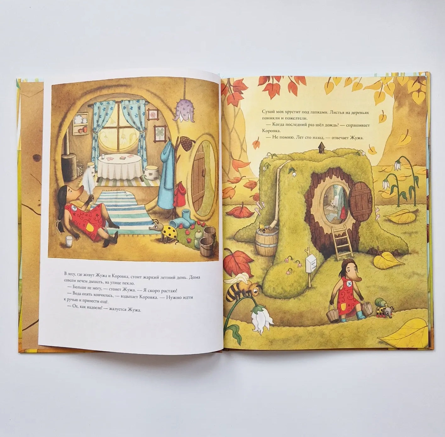 В лесу, где живут Жужа и Коровка, стоит летняя жара. Ручей пересох, дождя не было уже целую вечность! Друзья отправляются к большому озеру в поисках воды. Тут для них начинается новая жизнь. Жужа даже учится плавать!