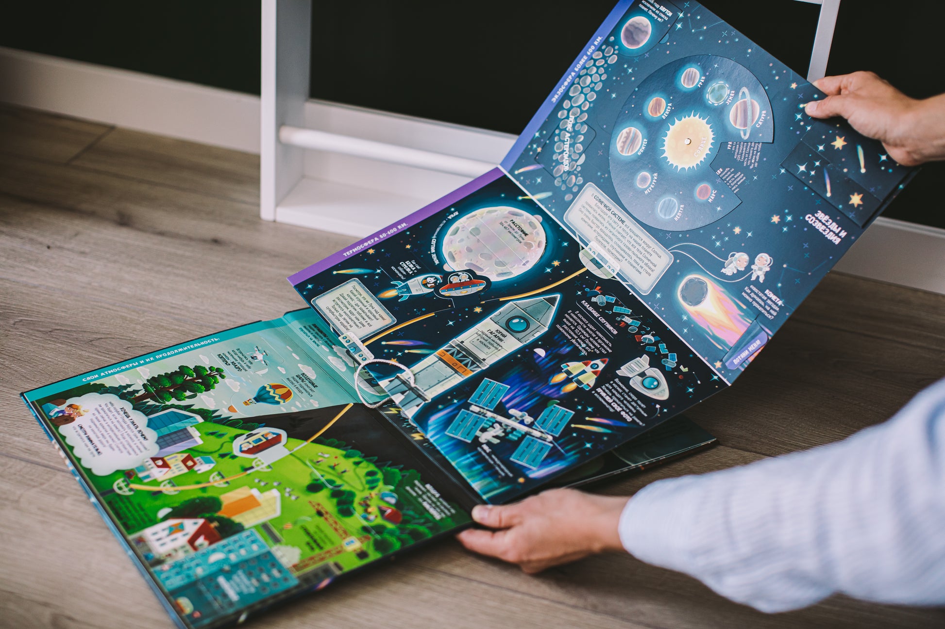 Открой книгу, и ты сможешь прокатиться на канатной дороге, полетать на самолете, и даже умчаться на ракете в открытый космос!