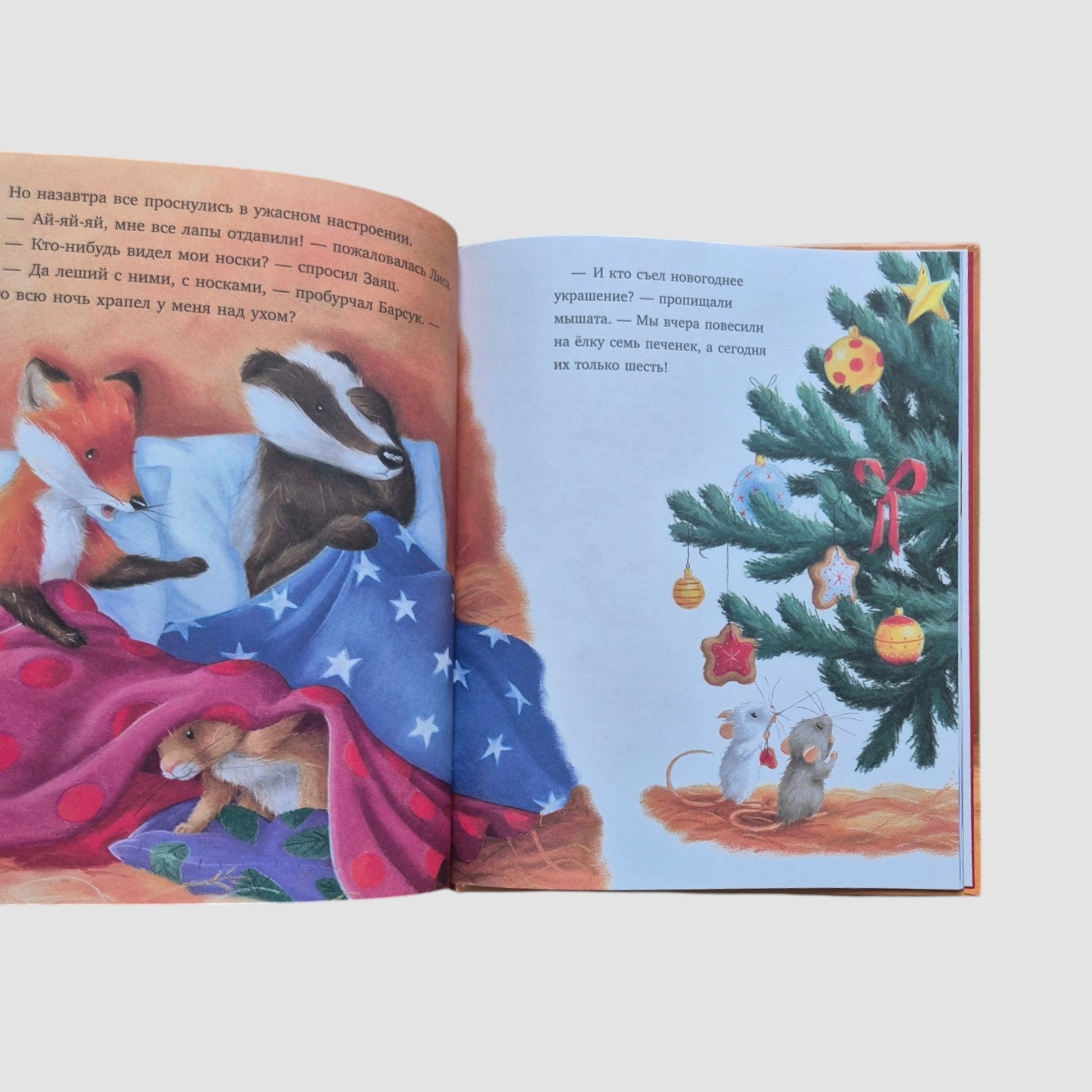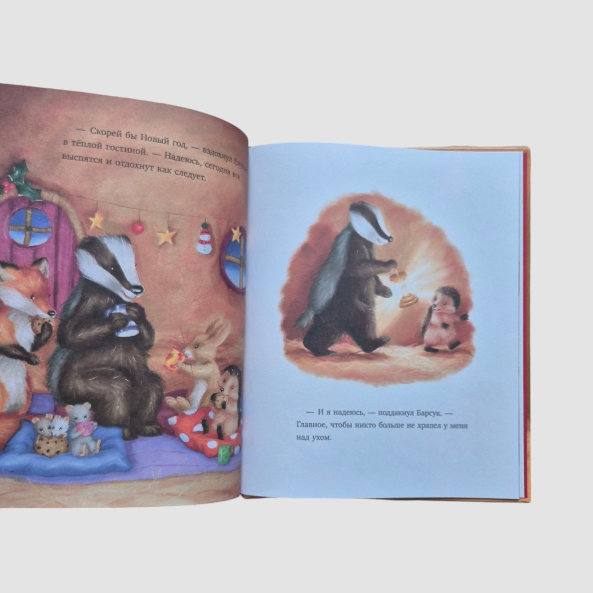 Послезавтра наступит Новый год, значит, пора ставить и украшать елку. На помощь Ежульке поспешили его друзья — Лиса, Барсук, Заяц и мышата. Наутро выяснилось нечто странное: кто‑то съел новогодние украшения и храпел так громко, что друзья не сомкнули глаз. А еще этот кто‑то украл любимую красную шапочку Ежульки! Ночные проделки неизвестного хулигана так огорчили друзей, что они рассорились. Успеют ли друзья помириться до Нового года?