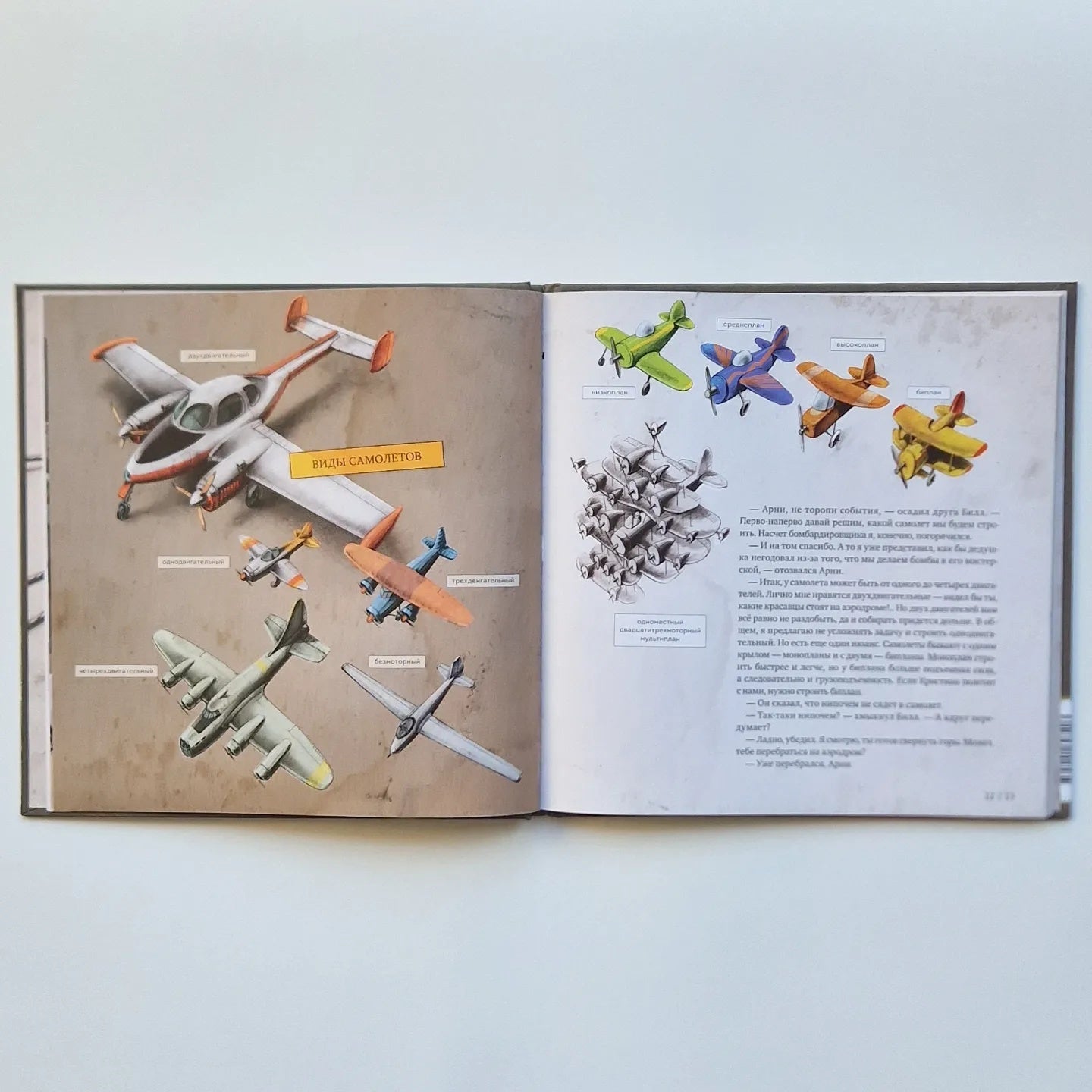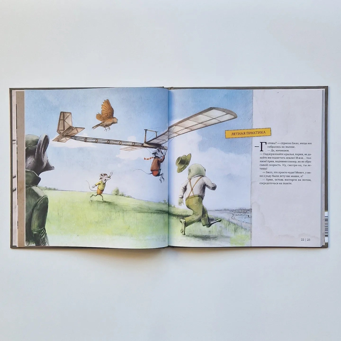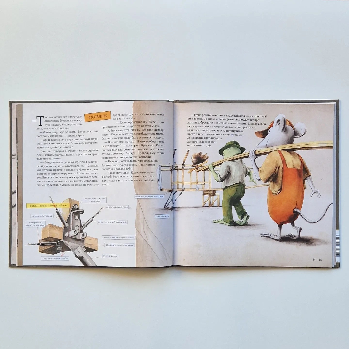 Эта история началась прошлым летом, когда трое друзей - мышонок Арни, воробей Билл и лягушонок Кристиан - собрали всем на удивление собственный автомобиль. И вот, год спустя, у них новые планы - построить самолет и полететь на нем в теплые края. На пути к своей цели друзьям предстоит преодолеть собственный страх, даже рискнуть жизнью, ну и самое главное - разобраться в том, как устроен самолет. Вместе с героями сказки вы узнаете, что такое фюзеляж, лонжероны и шпангоуты, для чего самолету нужны крылья и хвост, выясните, как управлять самолетом и какие приборы помогают пилоту в полете.