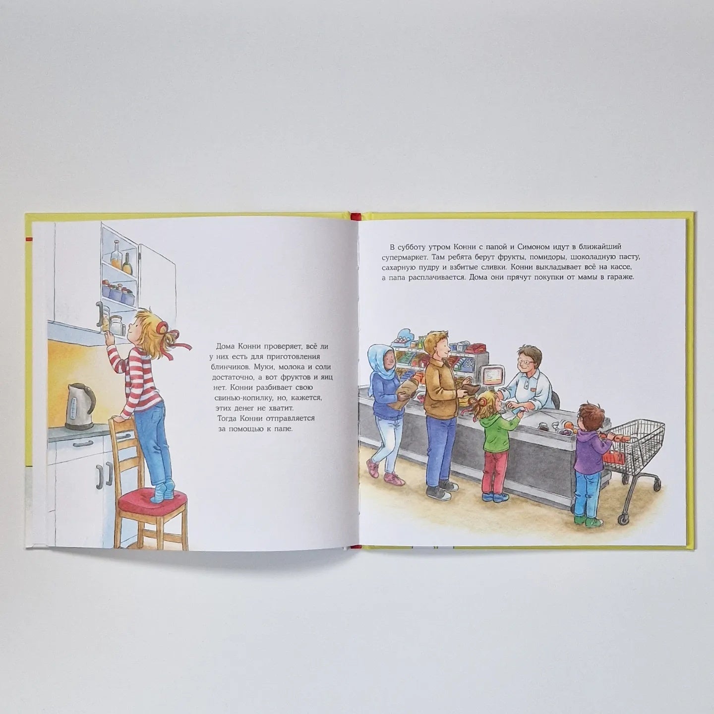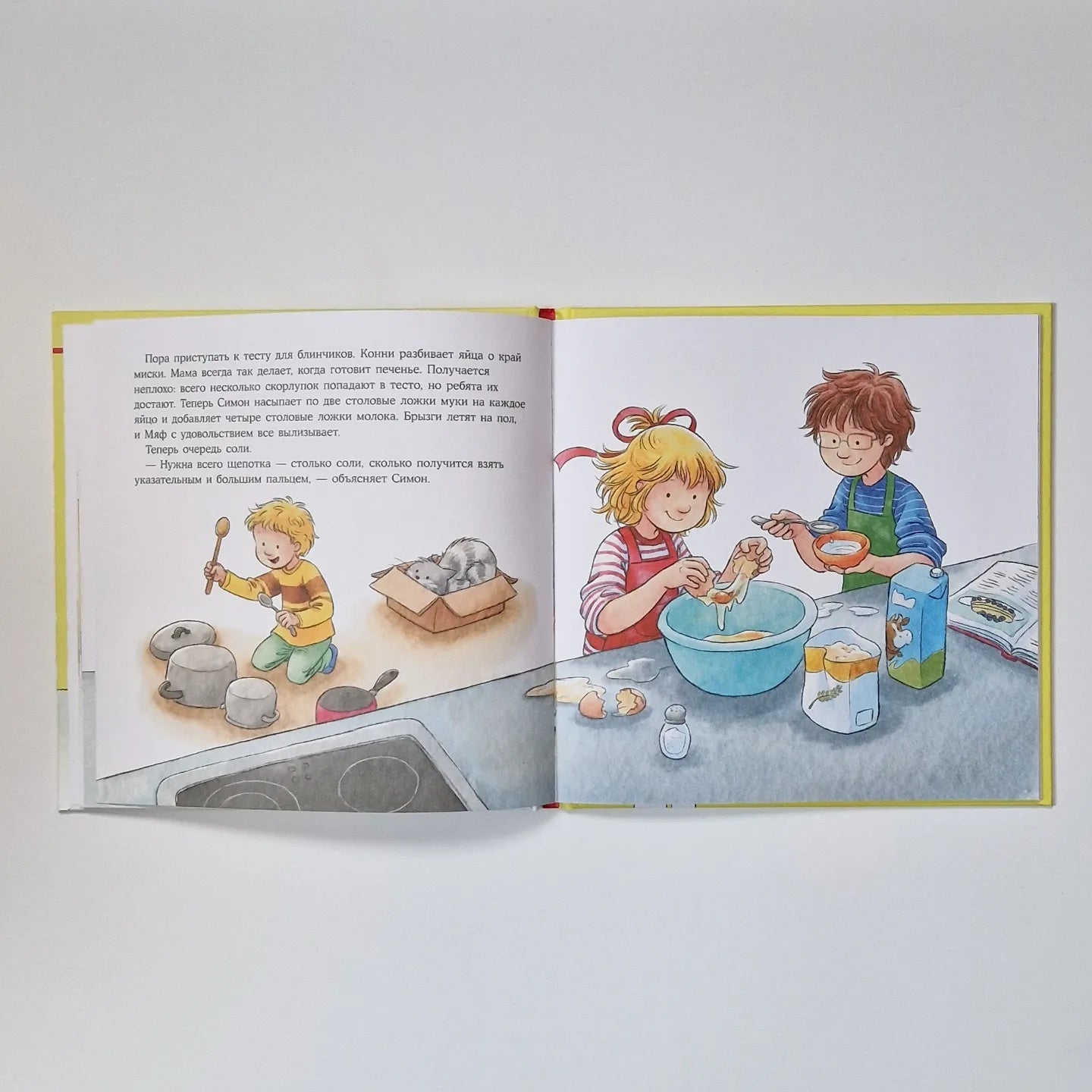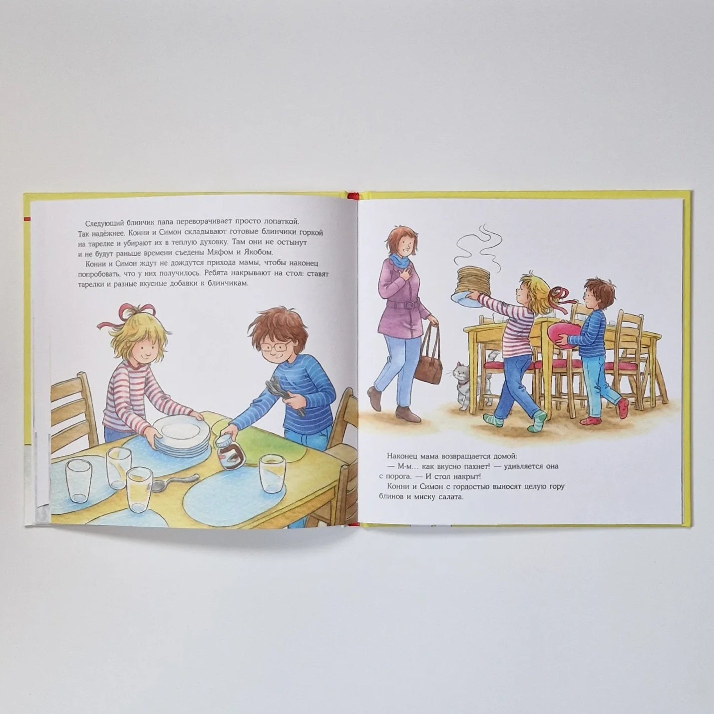 Конни вместе с другом Симоном задумали порадовать маму вкусными блинчиками. Рецепт несложный, но так ли просто на самом деле приготовить блинчики. Дома не хватает нужных ингредиентов, миксер трудно удержать в маленьких ручках, а блины постоянно комкаются на сковороде. На помощь ребятам приходит папа.