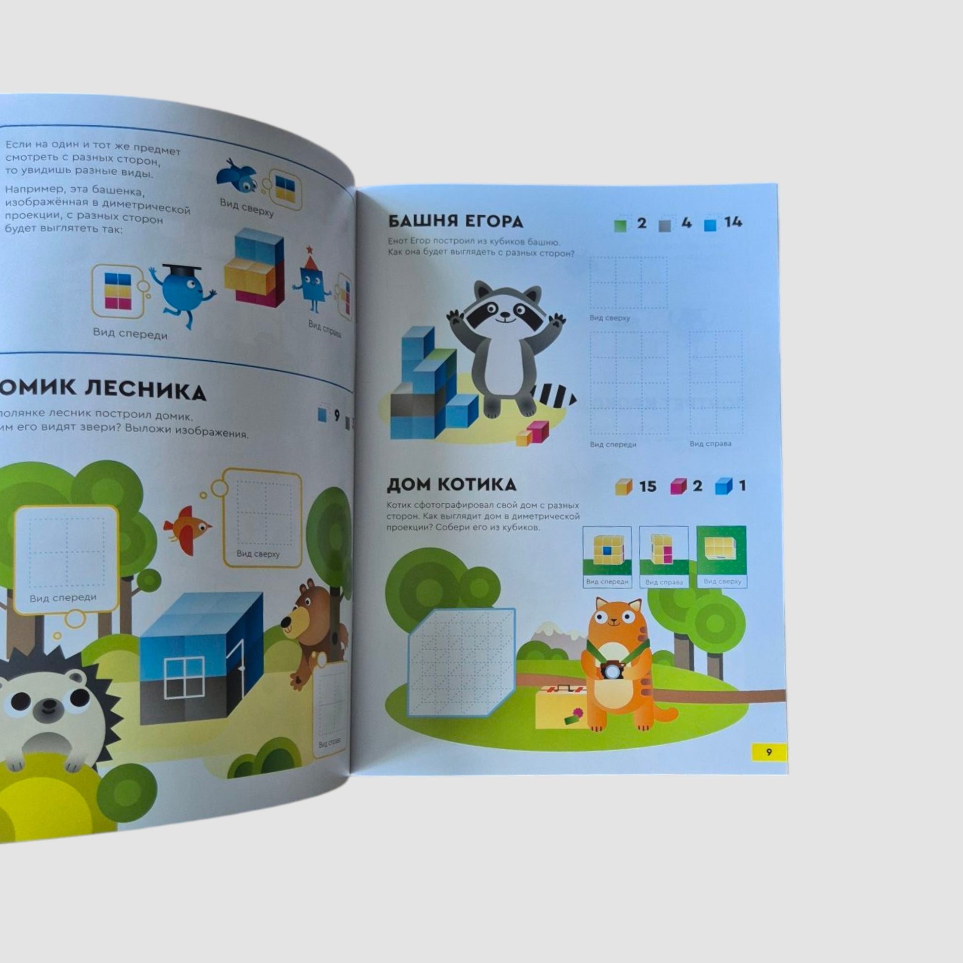 В этой тетради предстоит строить из кубиков, но не из обычных, а нарисованных. Работая с тетрадью «Кубометрия 3D», дети разбираются с видами проекций кубиков и развивают трёхмерное мышление, то есть способность «вращать» предмет в своей голове. В тетради 24 страницы с заданиями и 8 листов с наклейками.