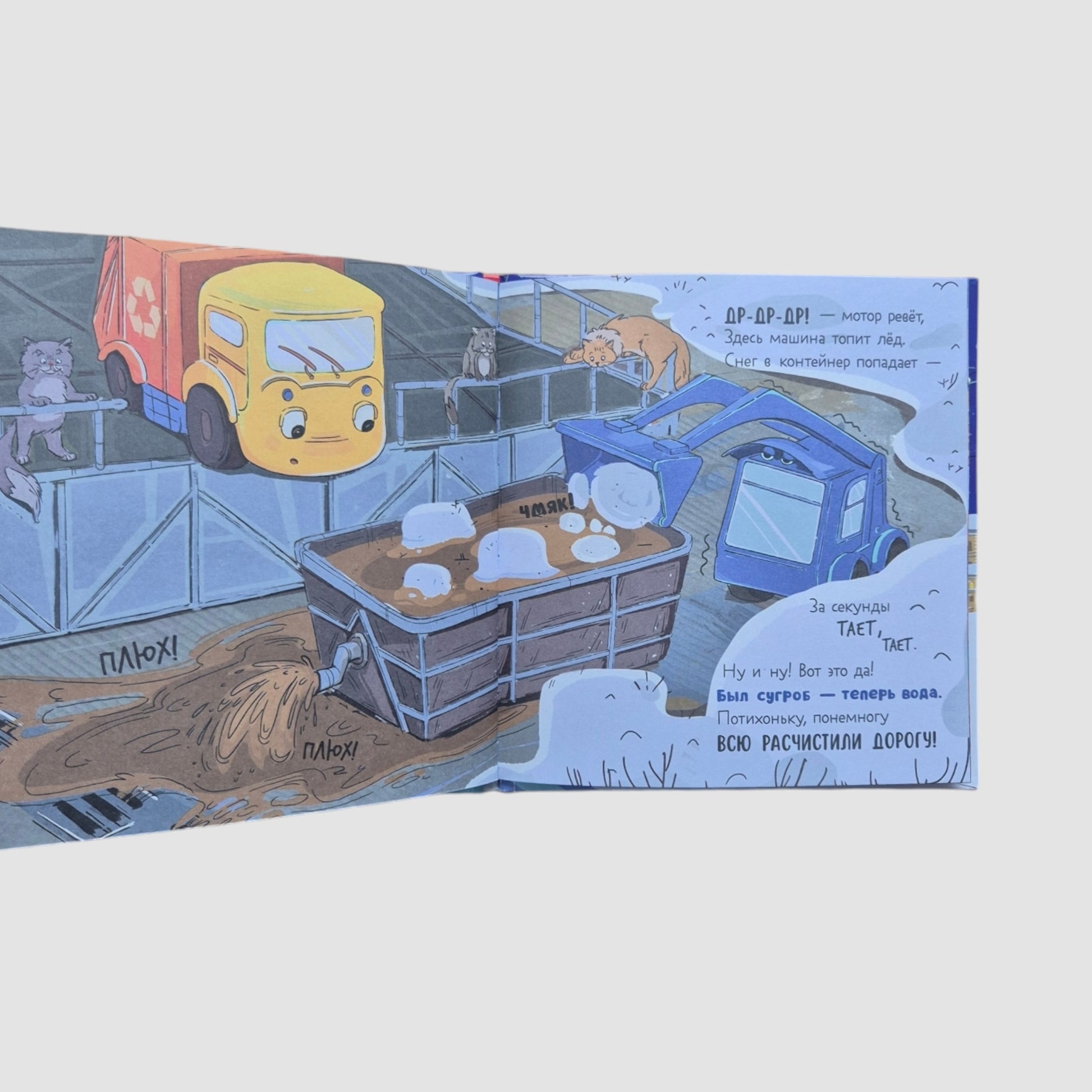 Много интересного о «жизни» машин узнают малыши из книги «Малыш мусоровоз встречает Новый год». А еще о том, куда пропадает снег, который большие снегоочистительные машины увозят с улиц. Как его плавят, во что он превращается.