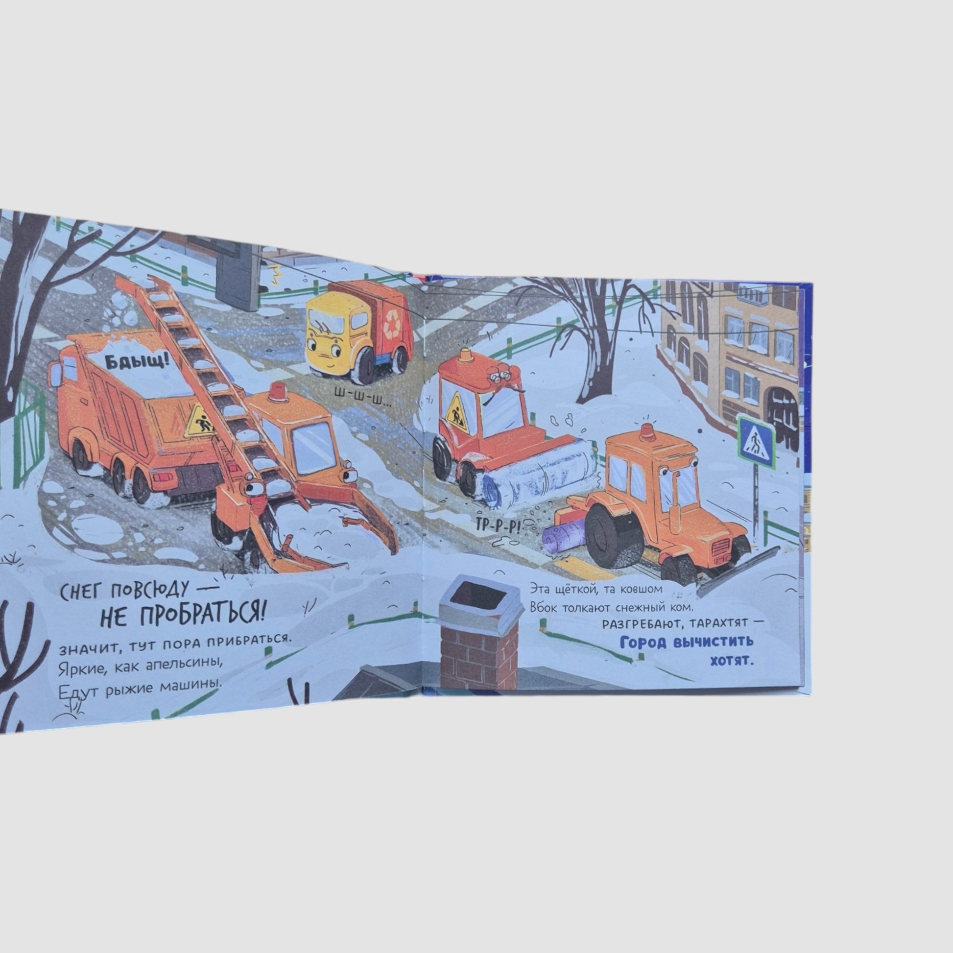 В городе выпал снег, и у больших автомобилей прибавилось работы. Сначала нужно переобуться — сменить шины на зимние, чтобы не поскользнуться. А потом нужно убрать снег.