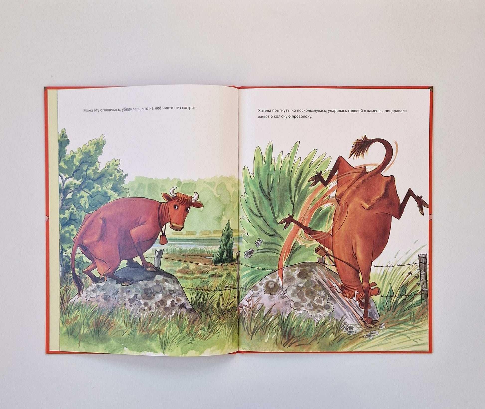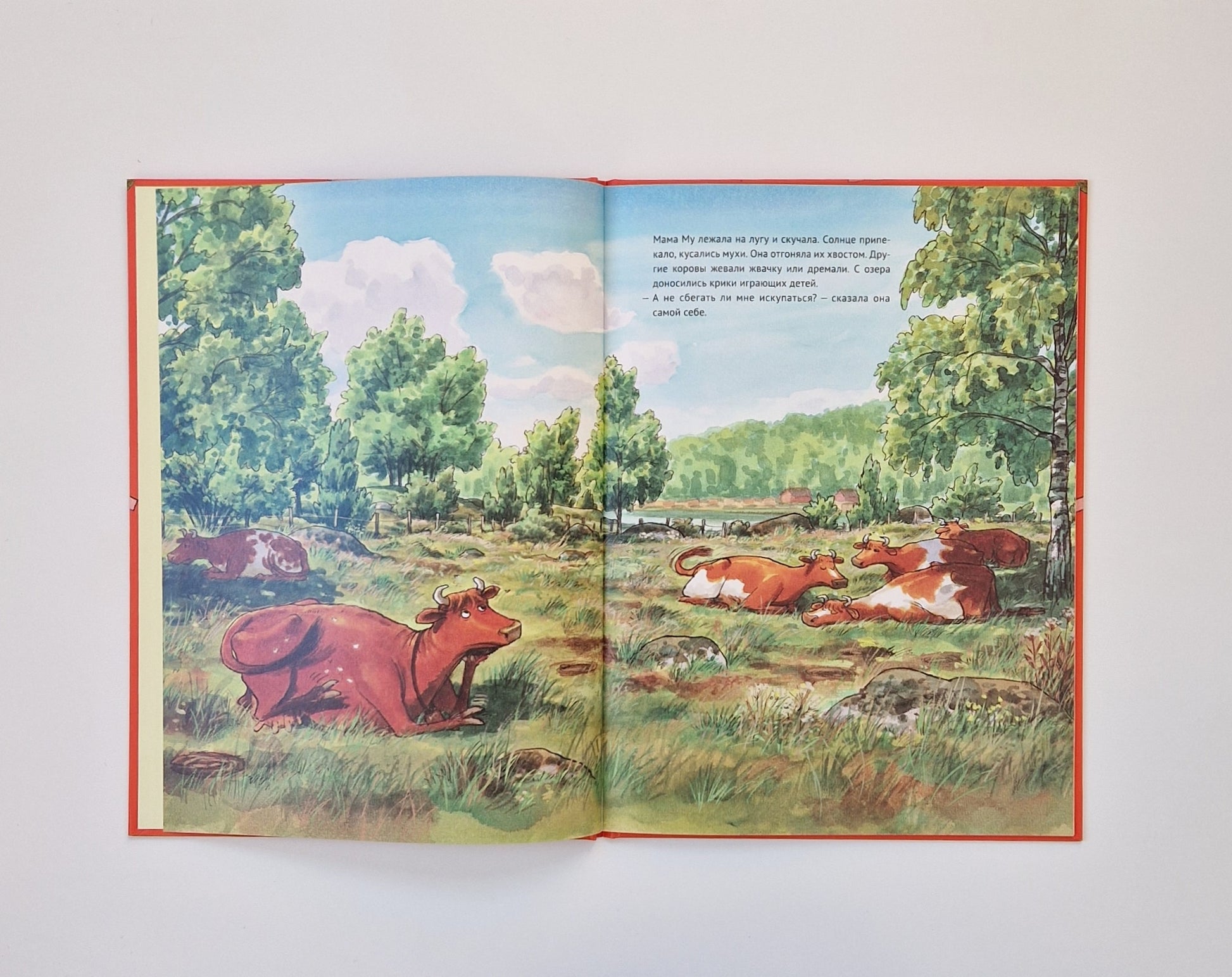 Самая непоседливая на свете корова Мама Му не может спокойно пастись на лугу, когда на дворе стоит погожий денёк. Она украдкой сбегает на озеро. Но по дороге Мама Му падает!