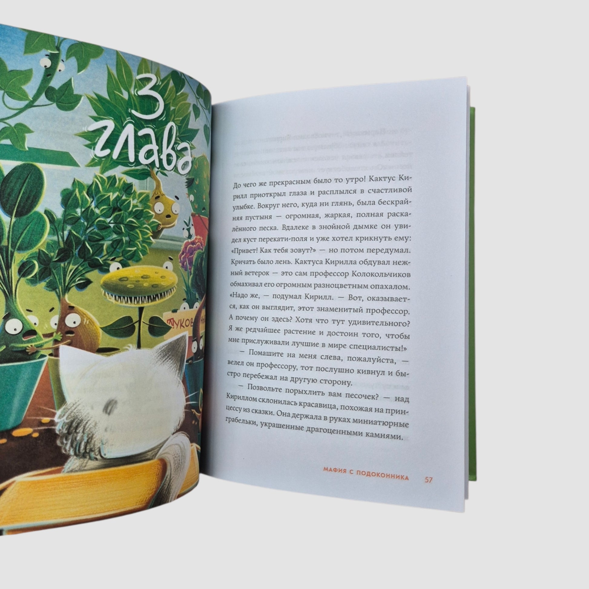 Город засыпает, просыпается мафия... Выкручивает лампочки, вытаскивает батарейки из пульта, запутывает шнурки и отрывает пуговицы с рубашек. Лимон Филимон, лиана Диана, банан Степан и их колючий главарь кактус Кирилл хотят доказать, что именно они должны править миром, а люди обязаны им прислуживать. Вот так поворот: комнатные растения — не про пыль и скуку? Конечно, нет. Среди них есть настоящие злодеи, задиры и злые гении.