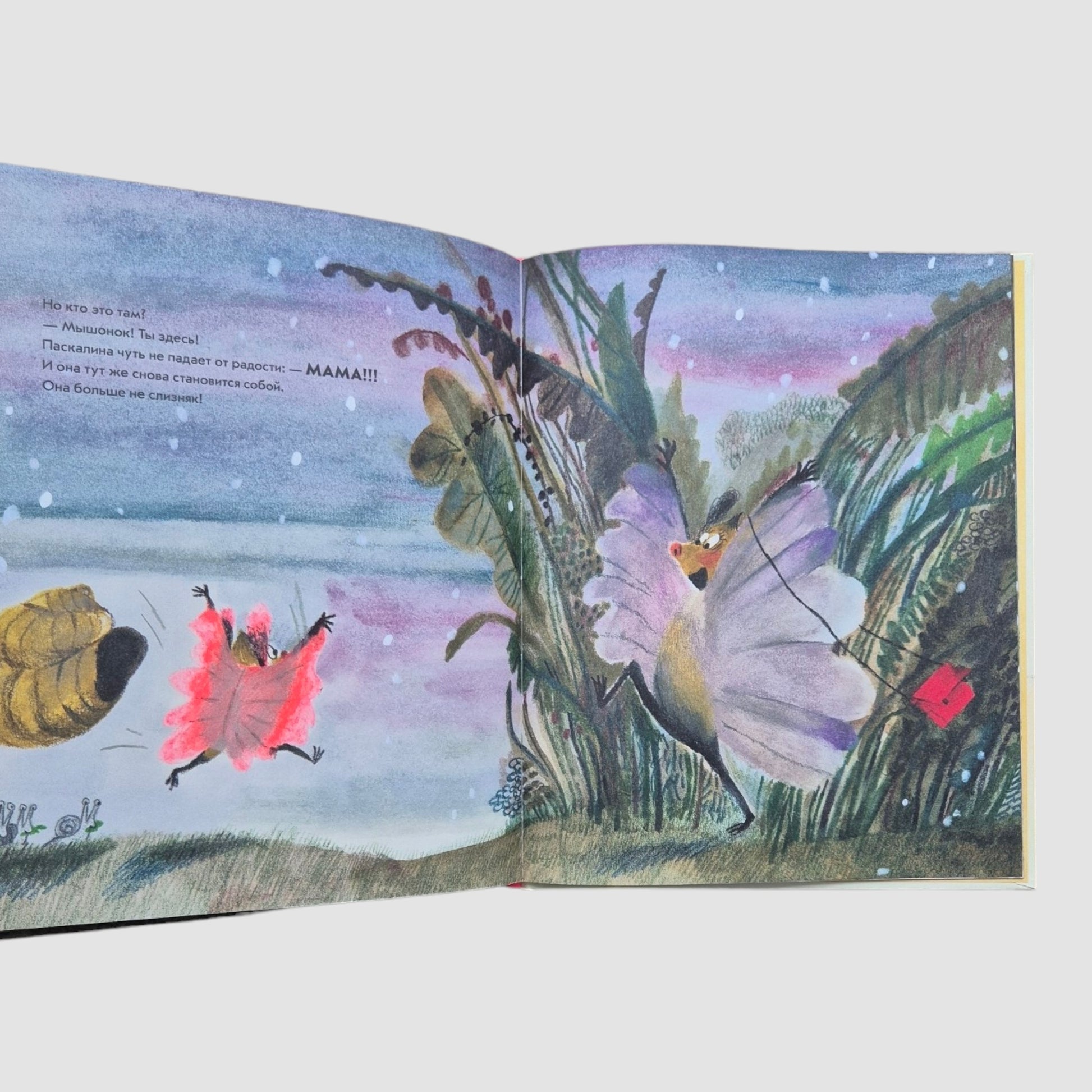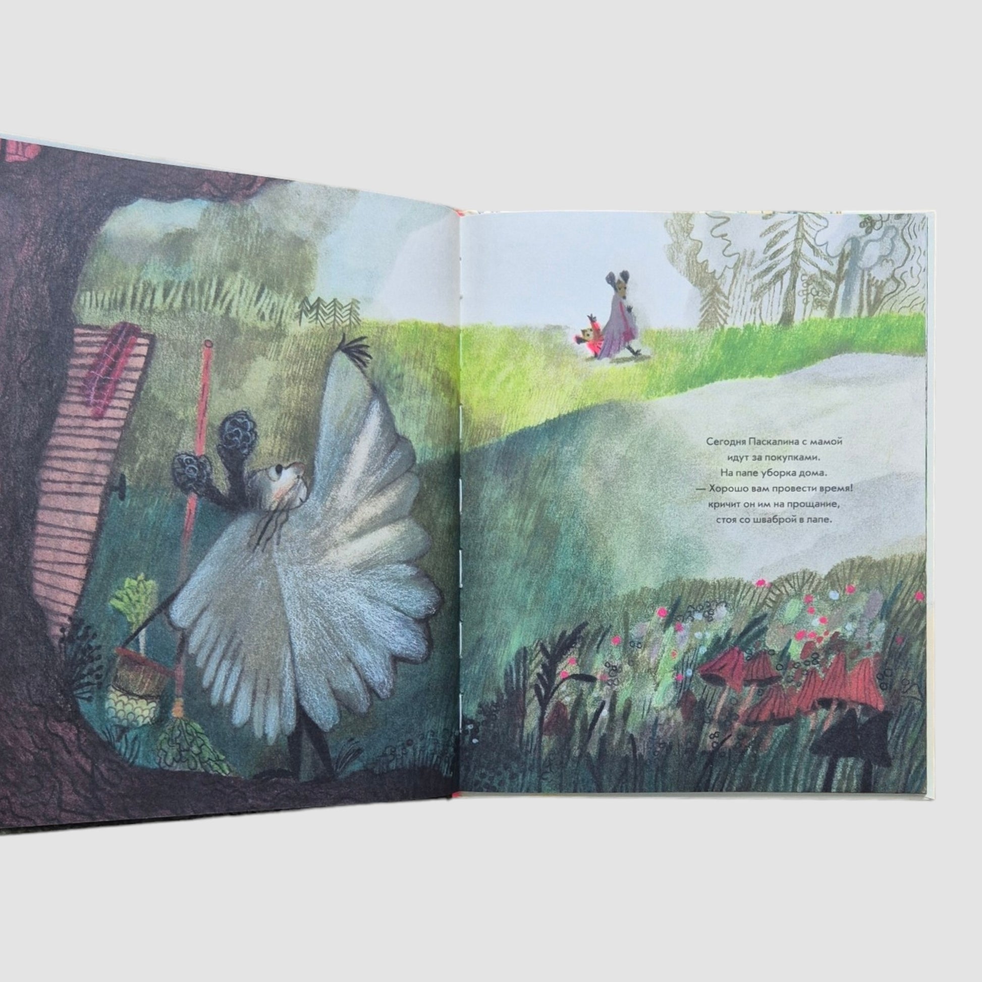 В книге использована интересная техника – пантон. Это когда некоторые участки страницы заливаются строго определённым ярким оттенком краски, а поверх уже накладываются иллюстрации – и пантон как бы подсвечивает всё изнутри.