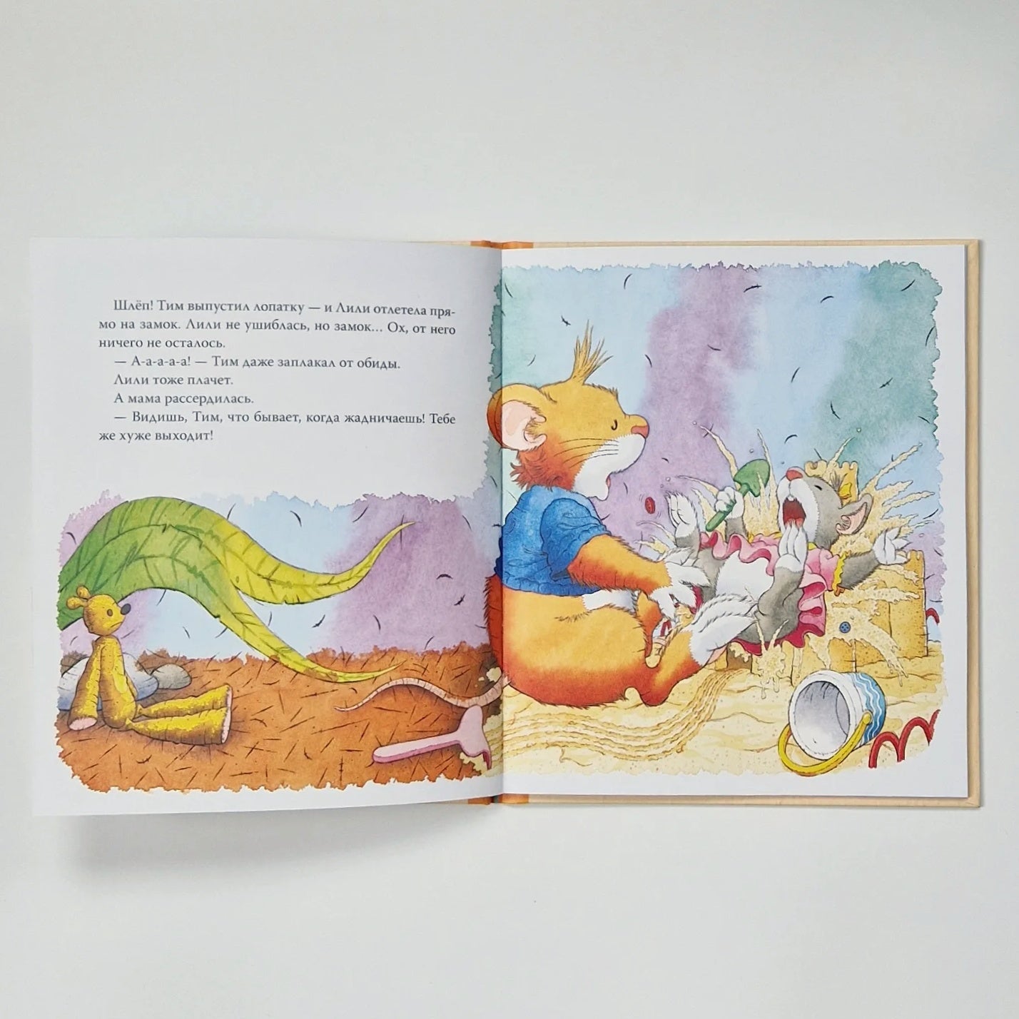 Как быть, малыш очень любит свои игрушки, никому их не дает и жадничает, даже если играет совсем один? Мышонок Тим и его друг Бенни помогут справиться с этой ситуацией и покажут, как здорово делиться и думать не только о себе!