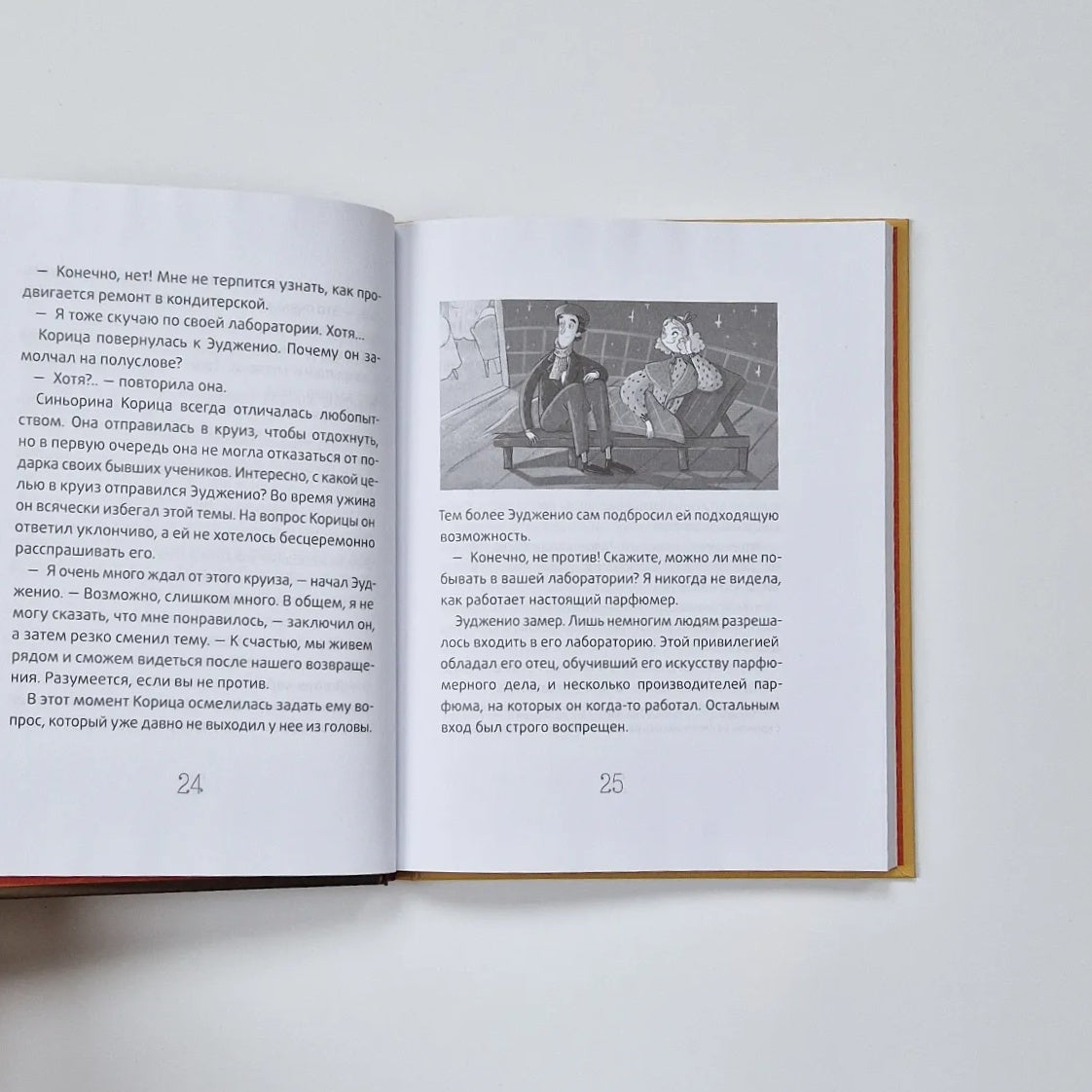 Конечно, Синьорине Корице помогут любимые ученики Марта и Маттео и новый друг - талантливый парфюмер Эудженио де Розмарини. Маттео просто влюбился в его лабораторию! Оказывается, у кондитерского дела немало общего с парфюмерным: строгие рецепты, полет фантазии и, разумеется, завораживающие ароматы. Но способны ли они спасти дружбу, вернуть доверие и подарить надежду?