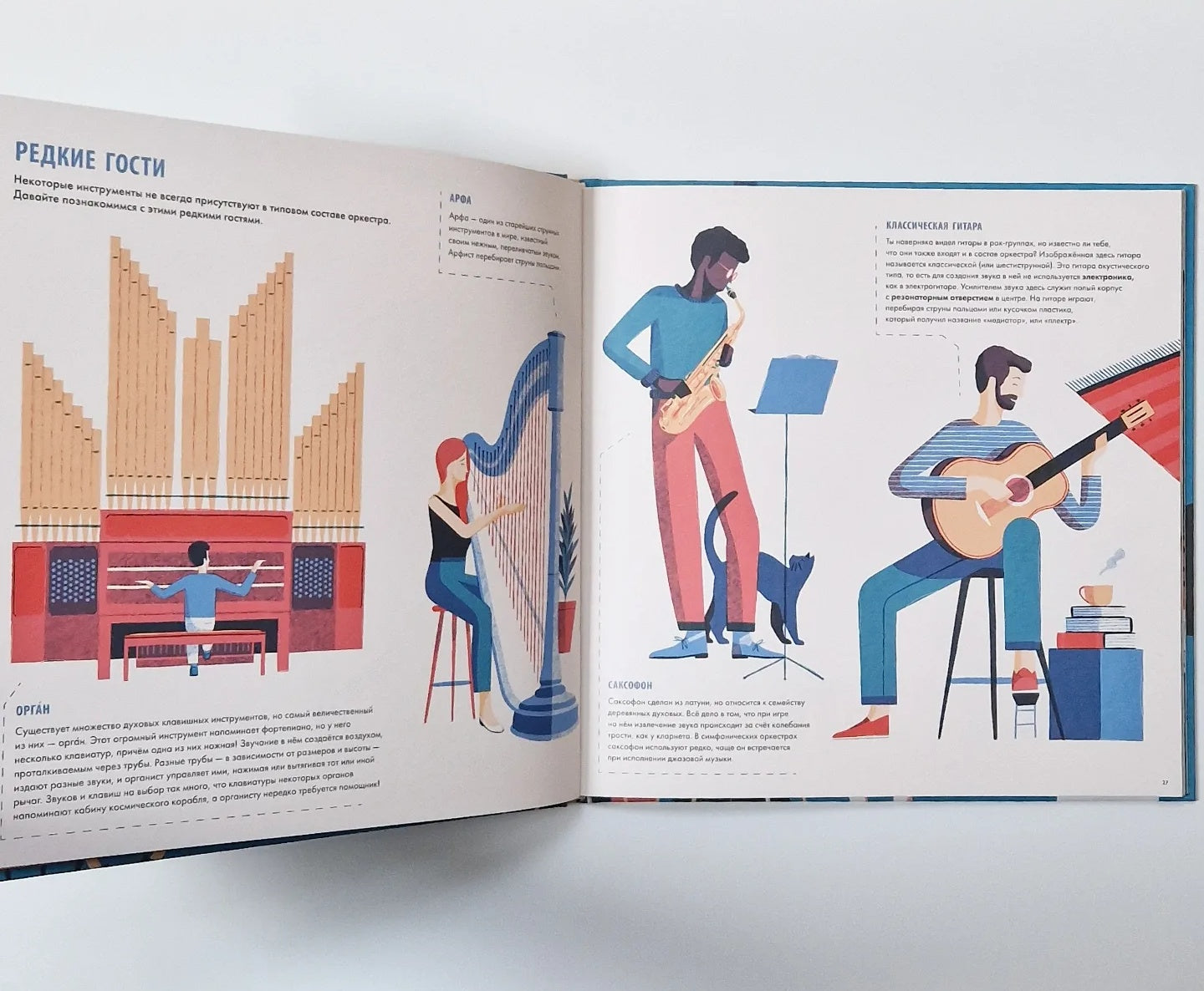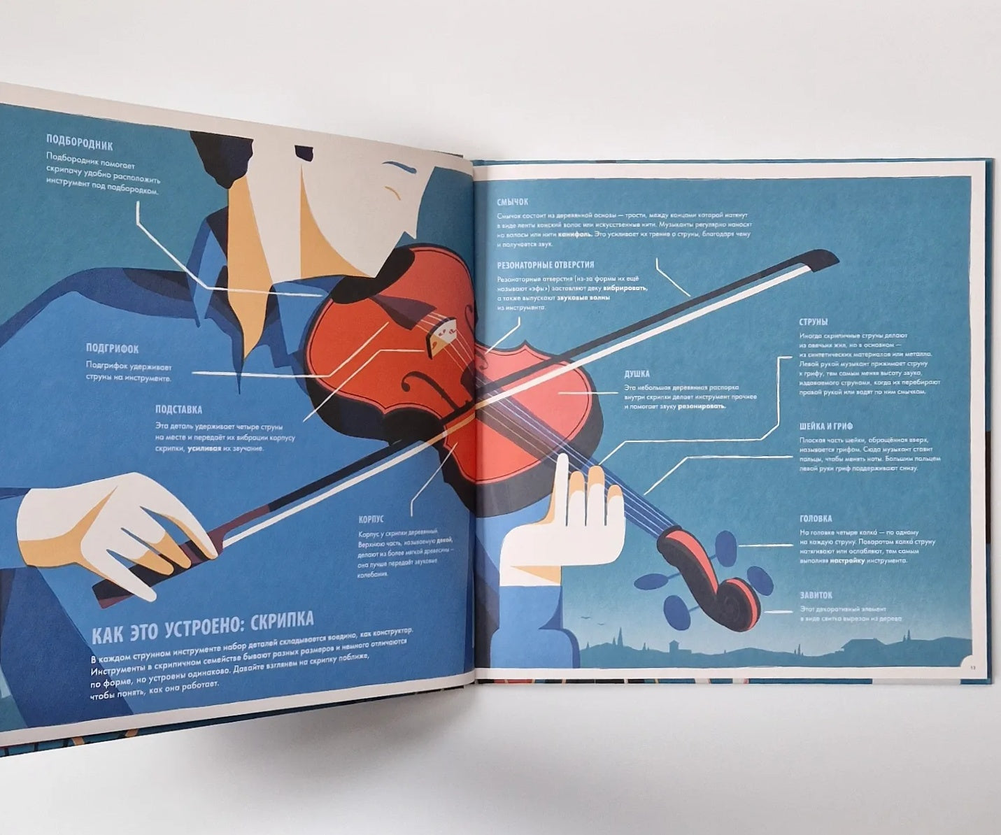 Как устроен Оркестр и на какие группы делятся музыкальные инструменты? Что значит «читать ноты» и как сочиняют музыку? Из чего состоят скрипка, труба и кларнет? Чем орган отличается от пианино? Почему так важна акустика концертного зала?