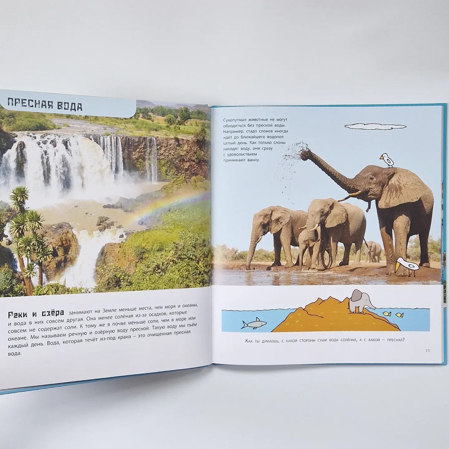 В этой познавательной книге с великолепными фотографиями собраны увлекательные сведения о водном мире нашей планеты. Что такое круговорот воды в природе? Чем отличается вода в реках и в океанах? Здесь вы найдёте истории о самых необычных и живописных реках и озёрах, о морях и океанах, об искусственных водоёмах, дамбах и гидроэлектростанциях. А еще в книге много занимательных заданий и весёлых авторских рисунков, благодаря которым новые знания легче усваиваются.