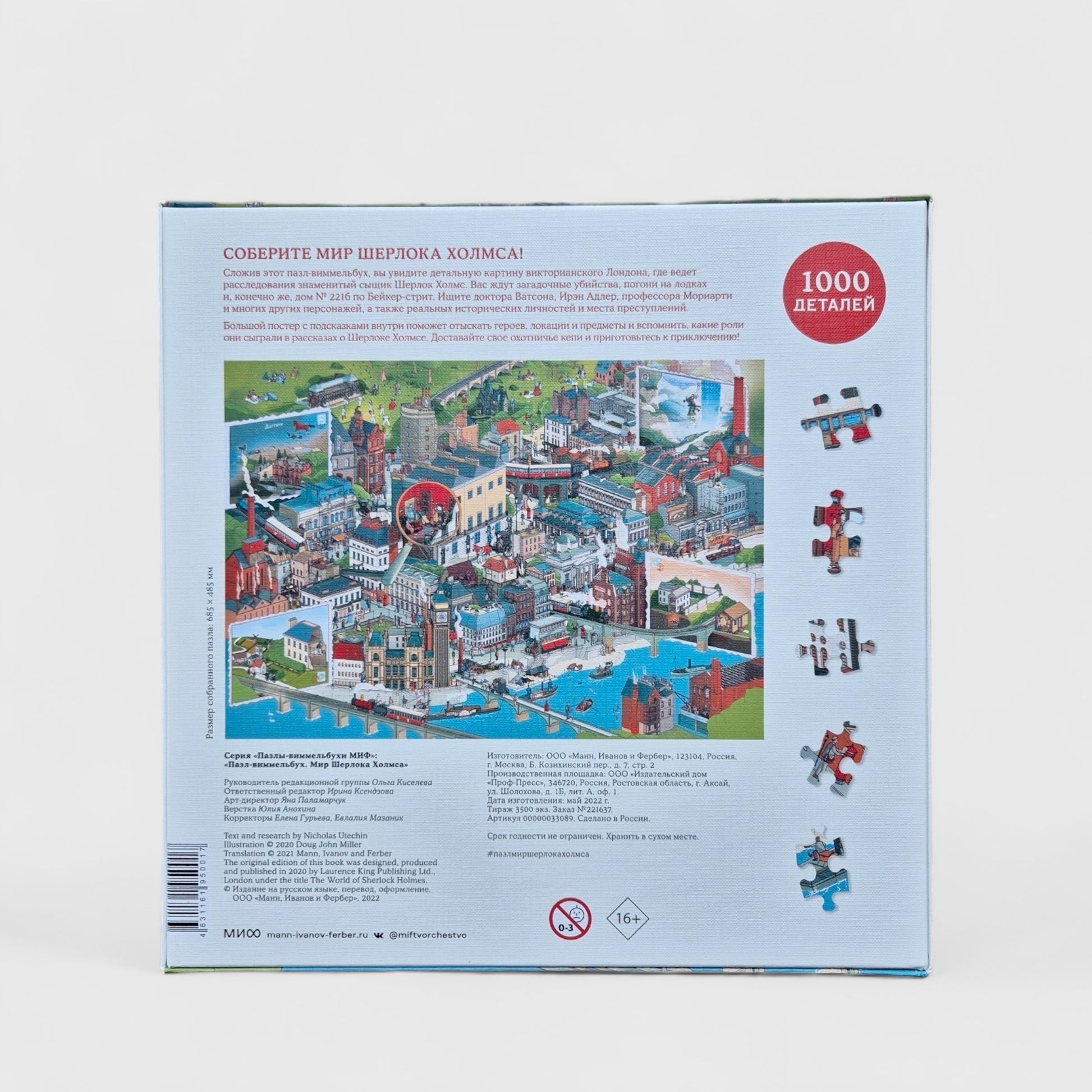 Пазл-виммельбух по вселенной Шерлока Холмса. 1000 деталей, на которых можно найти множество сюжетов и персонажей Шерлока. Описание каждого сюжета прилагается.