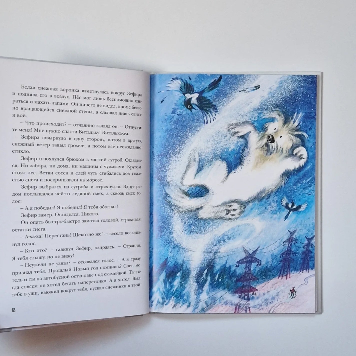 Перед Новым годом Виталька, хозяин пса Зефира, попал в больницу. Зефир очень тосковал и решил во что бы то ни стало отыскать друга. На прогулке он учуял от одной из машин знакомый запах — так пахло от тех, кто забирал Витальку! Зефир со всех лап погнался за машиной, но вдруг сильный порыв ледяного ветра сбил его с ног и закружил в воздухе...