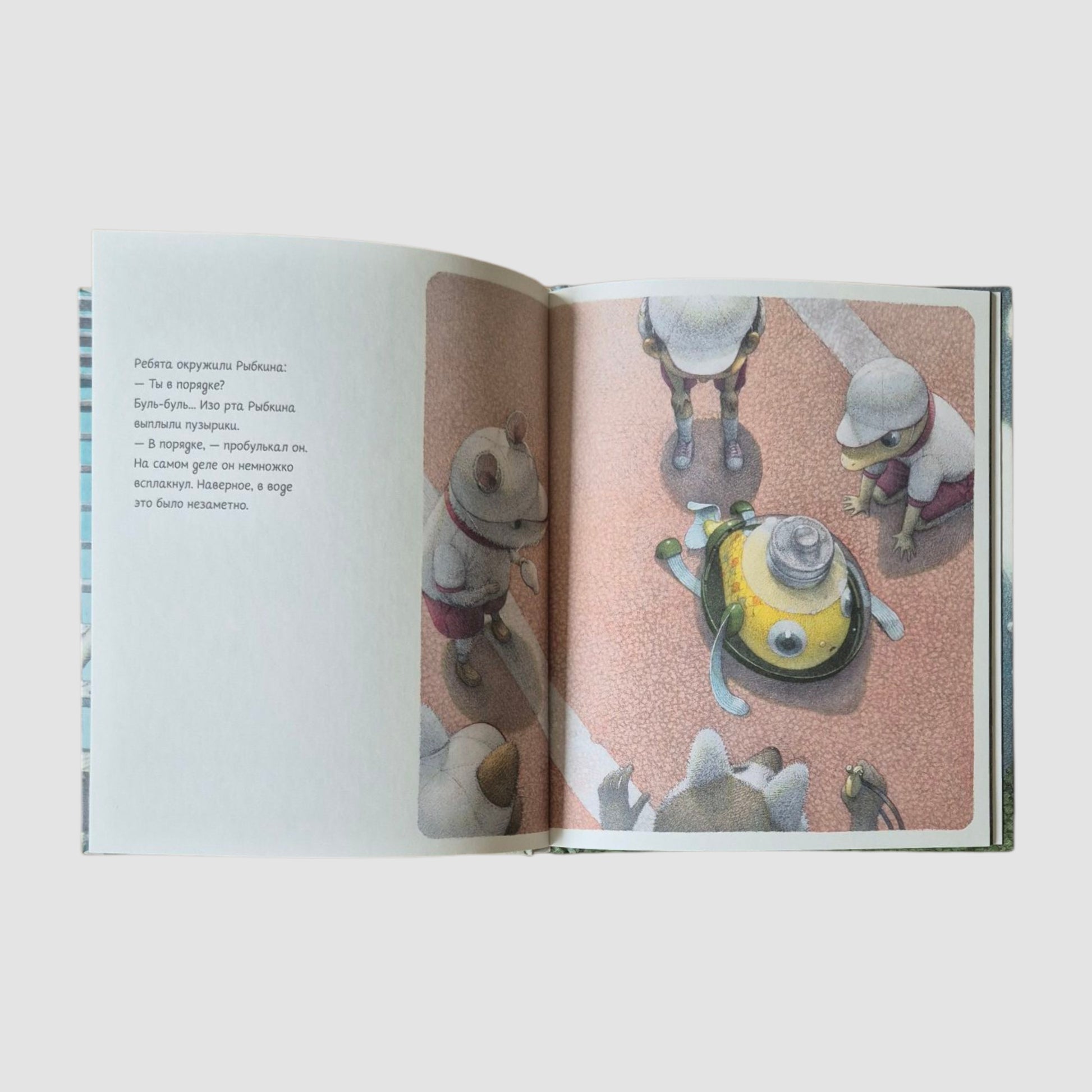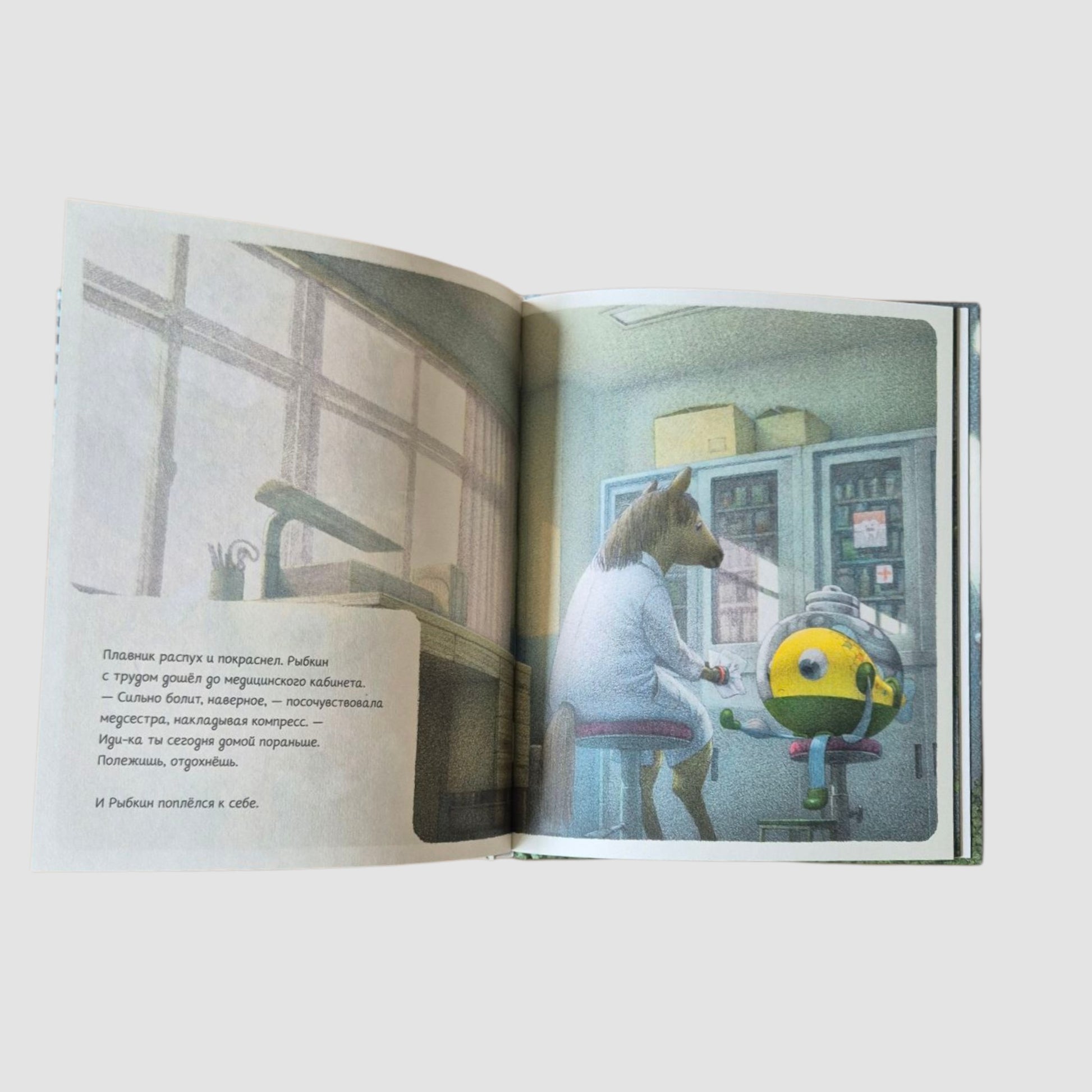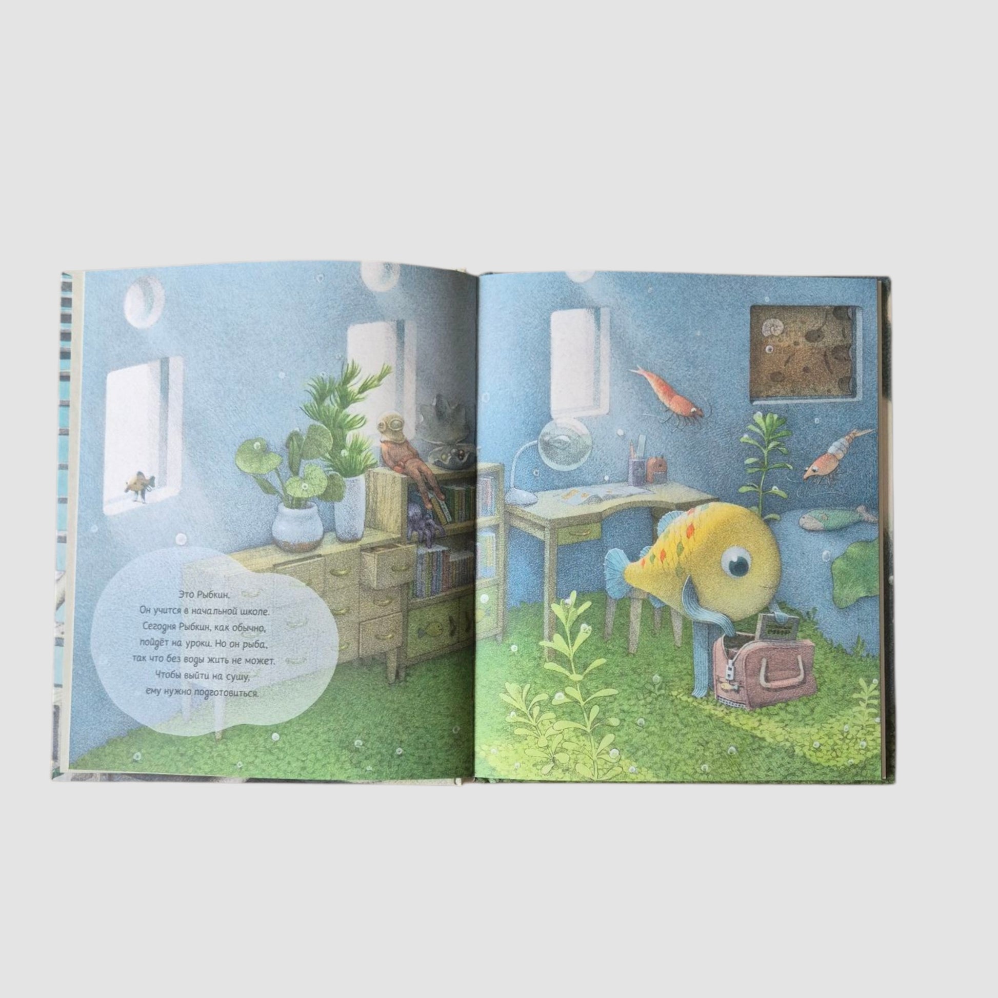 Рыбкин живёт в воде, но ходит в школу с другими ребятами. Каждый день он надевает костюм с тяжёлым стеклянным шлемом. На физкультуре ему труднее всех, Рыбкин её терпеть не может.