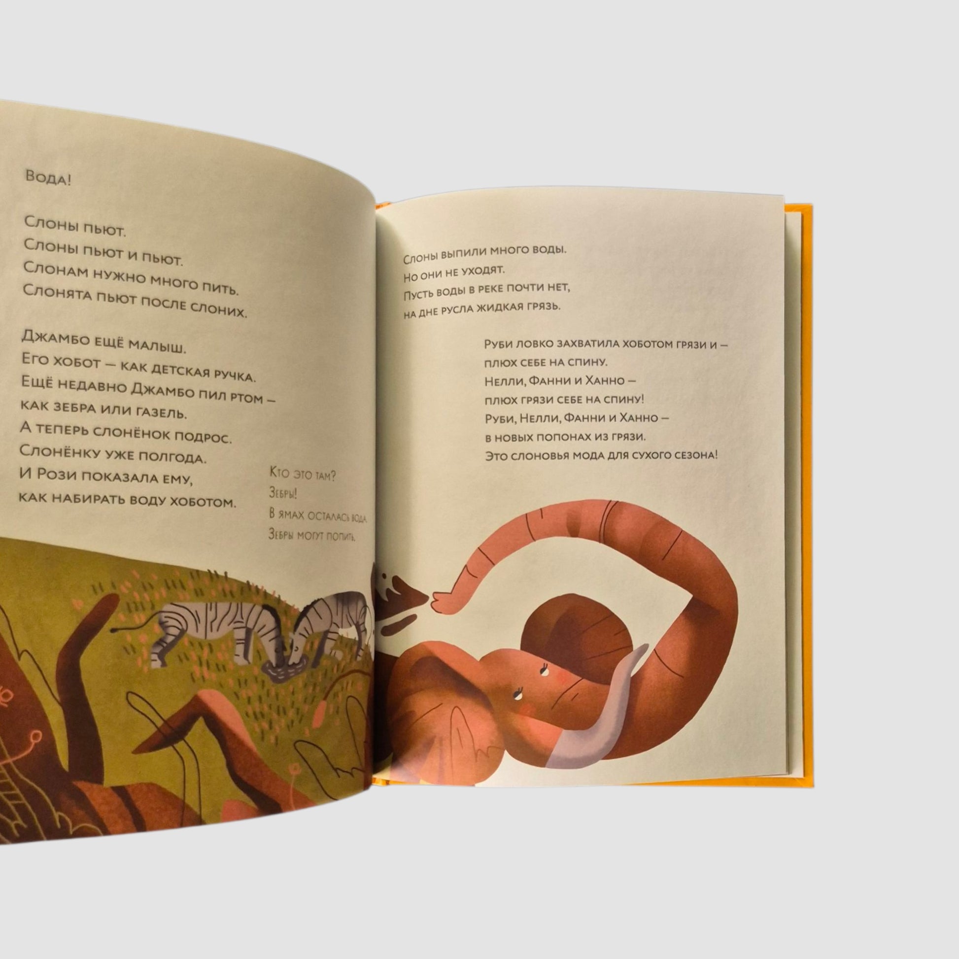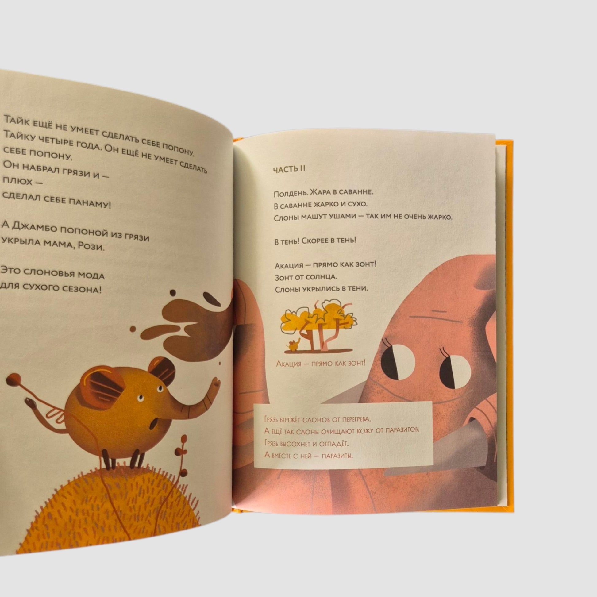 В серии три уровня сложности. Перед вами — книга второго уровня: «Легко читать». Она расскажет о том, как в саванне живут слоны. Прогулявшись вместе со стадом слонов во главе со слонихой-матриархом Нелли, читатели узнают множество любопытных фактов. Почему одни слоны обитают в стаях, а другие предпочитают держаться поодиночке? Зачем слоны обмазываются грязью и для чего им такие большие уши? Какой вес может поднять слон и как определить, левша слон или правша?