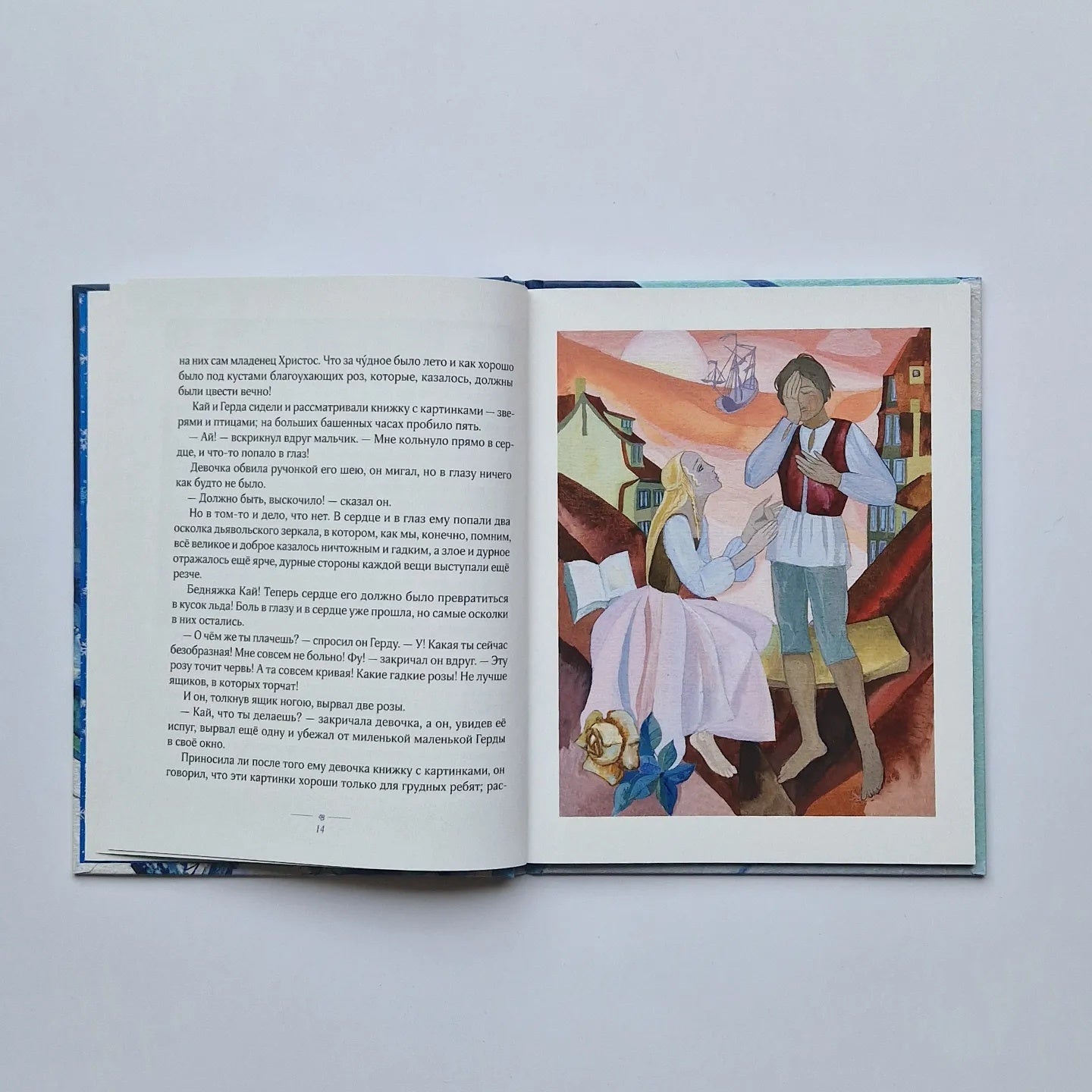 Сочинённая великим сказочником Г. Х. Андерсеном история о том, как маленькая Герда в поисках своего названого братца Кая босая обошла полсвета, приводится в полном (без сокращений и адаптаций) переводе на русский язык, выполненном Анной Ганзен. Текст сопровождают идеально отражающие северный колорит рисунки карельской художницы Тамары Юфа