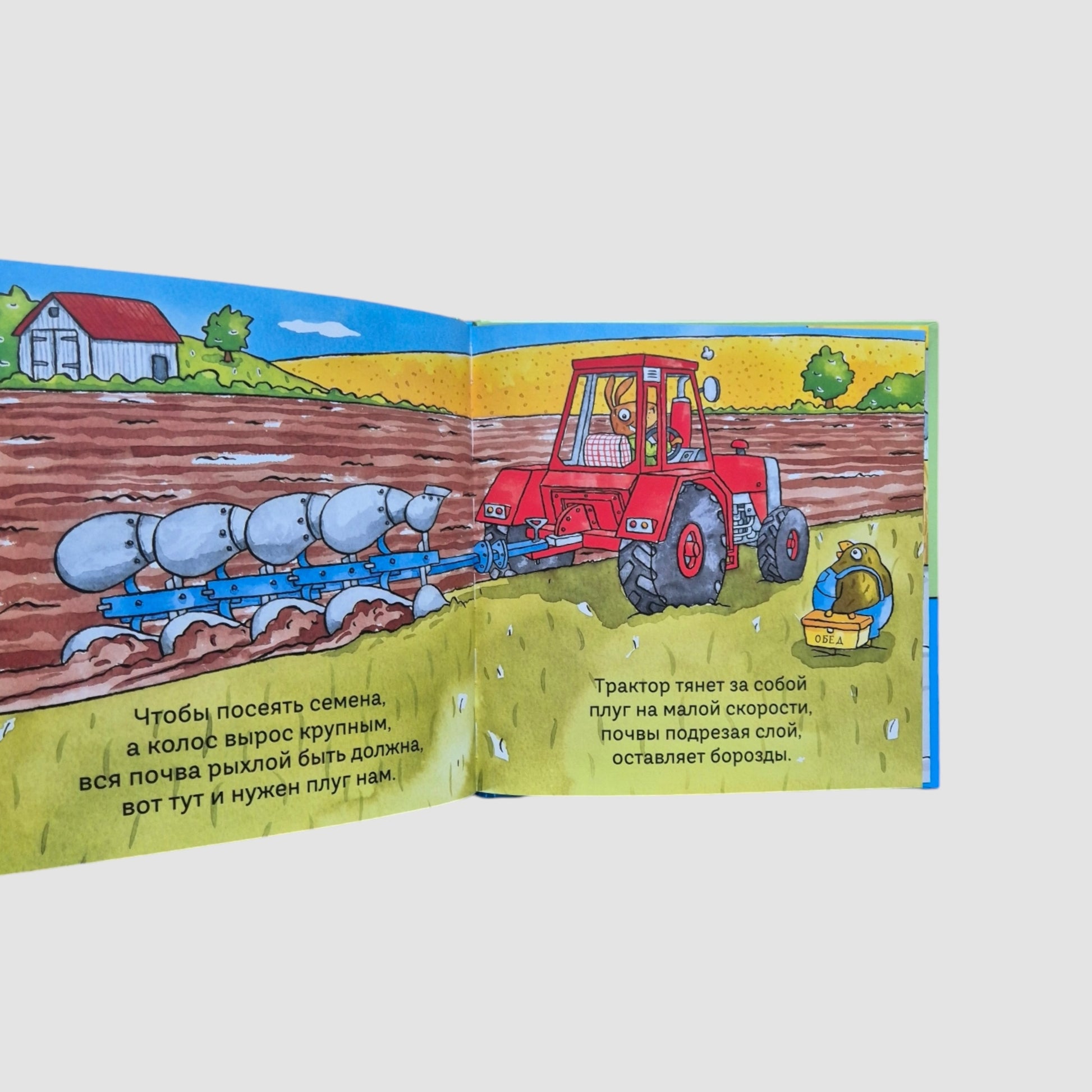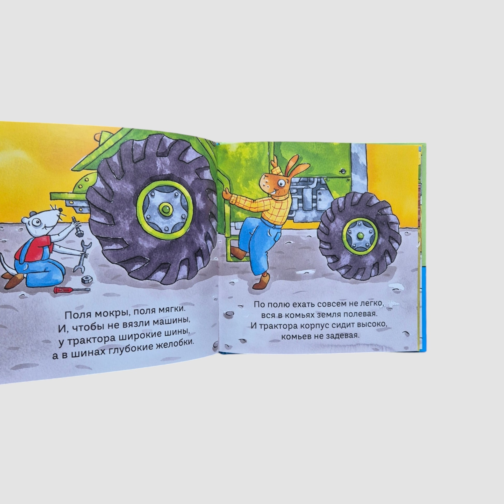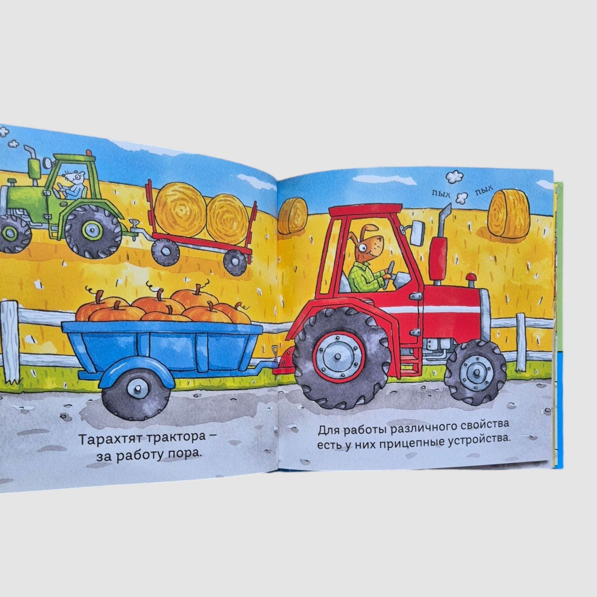 Удивительные тракторы вместе с командой животных становятся фермерами. Сядьте за руль и откройте для себя все виды работ, которые тракторы могут выполнять на ферме. Каждая страница полна деталей, которые нравятся маленьким любителям техники: плуги, прочные комбайны, прицепы, пресс-подборщики и многое другое!