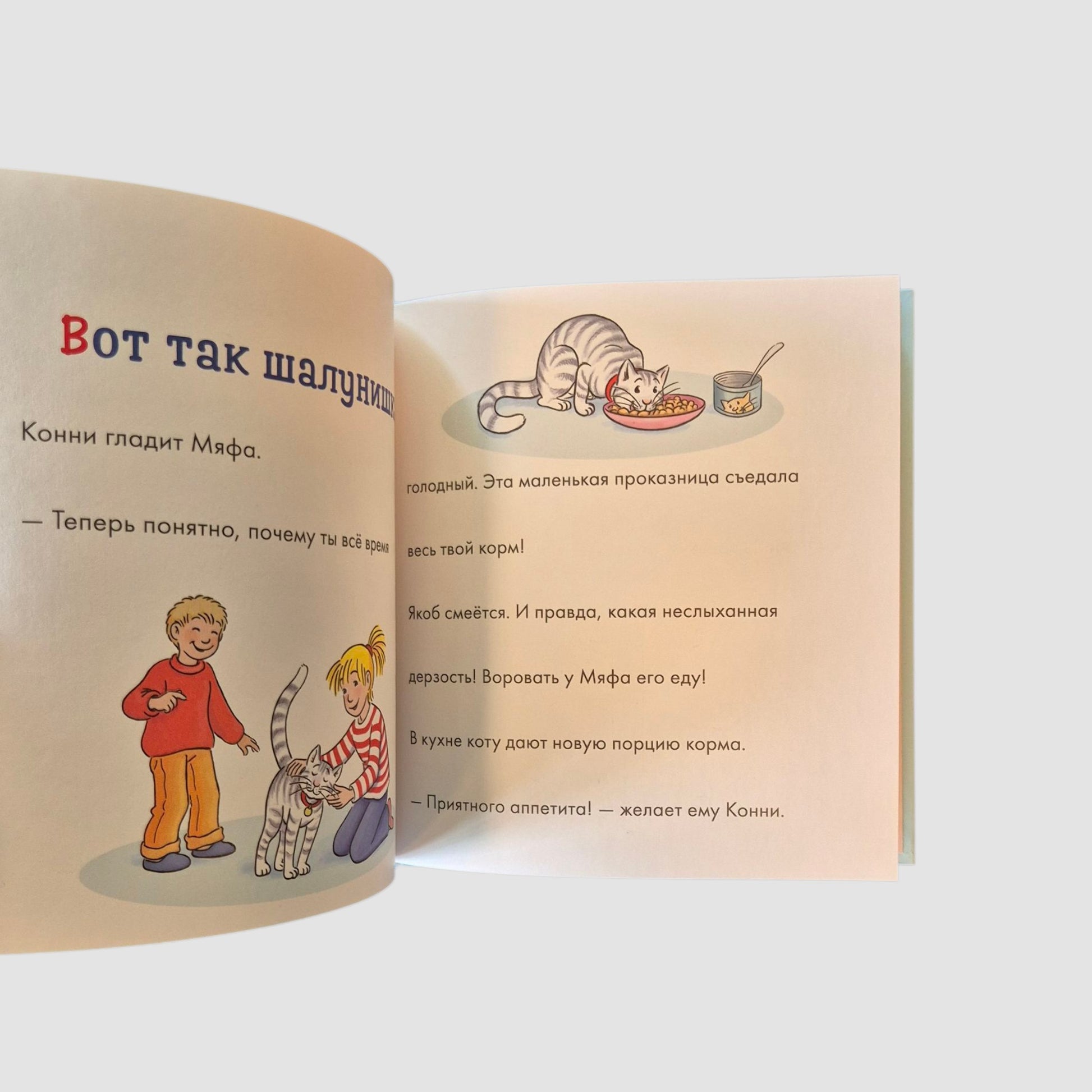 Да что же это такое? В миске кота Мяфа опять пусто! А ведь сегодня Конни уже дважды подкладывала в неё корм. Что за таинственный воришка крадёт еду у кота Мяфа? Разгадайте загадочный случай вместе с любимой героиней, выполните увлекательные задания и узнайте много нового о кошках.