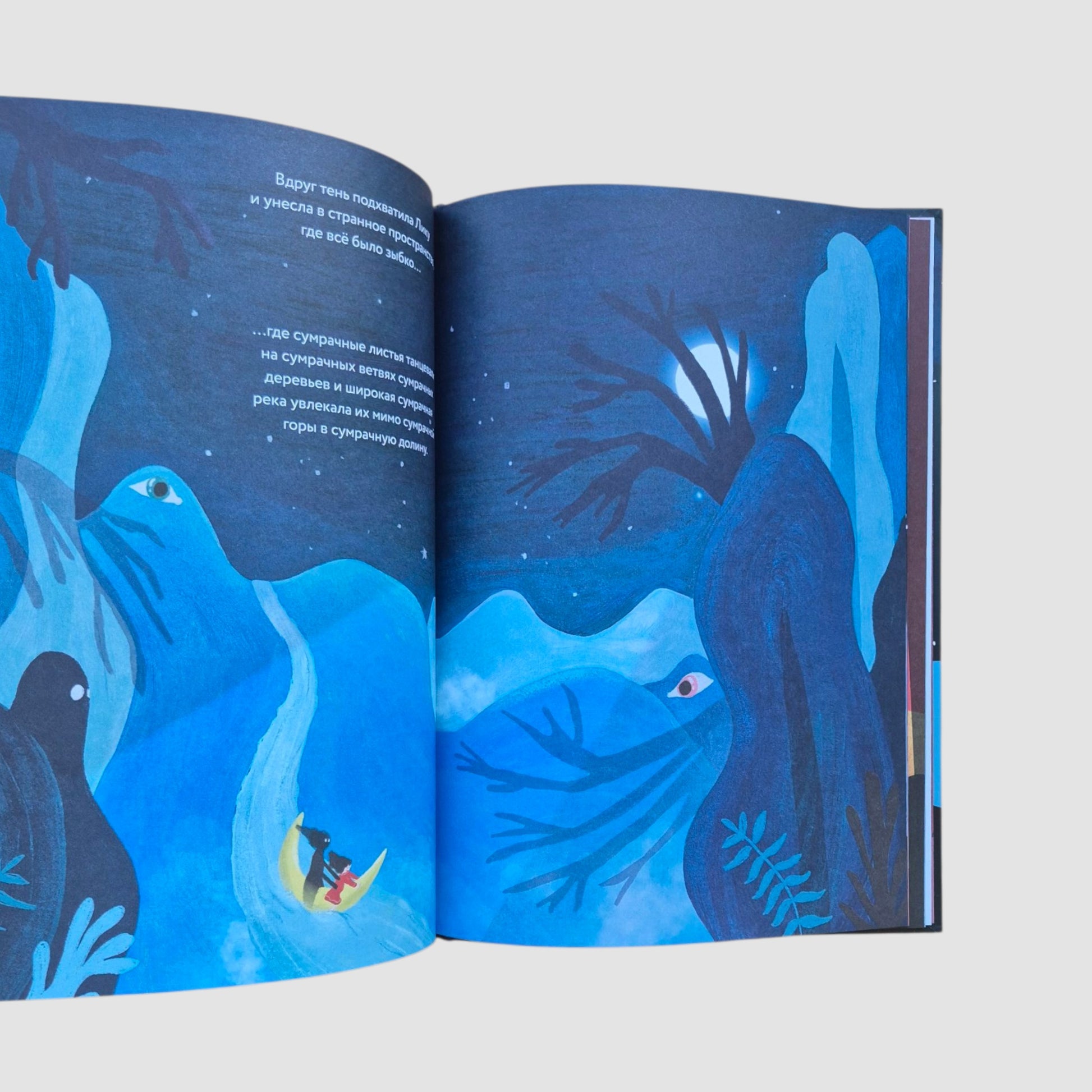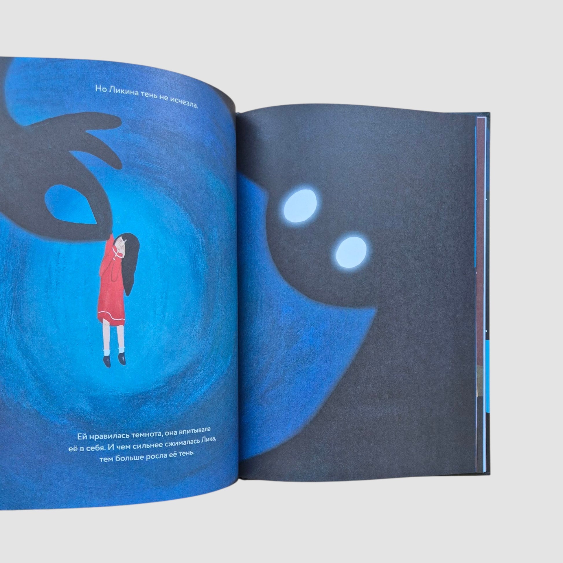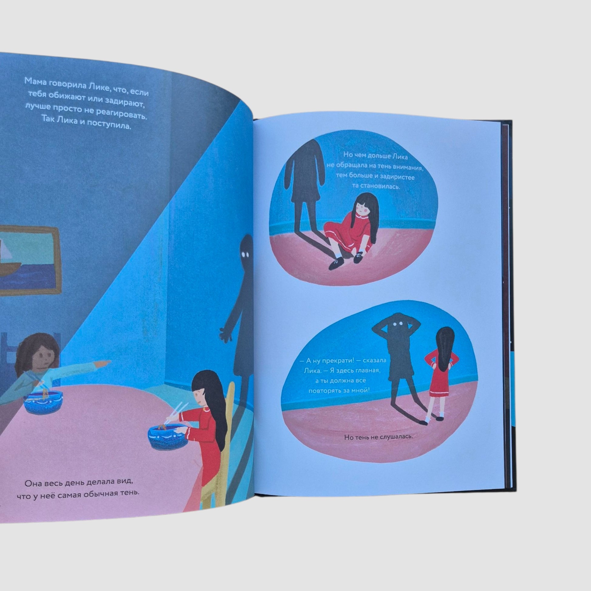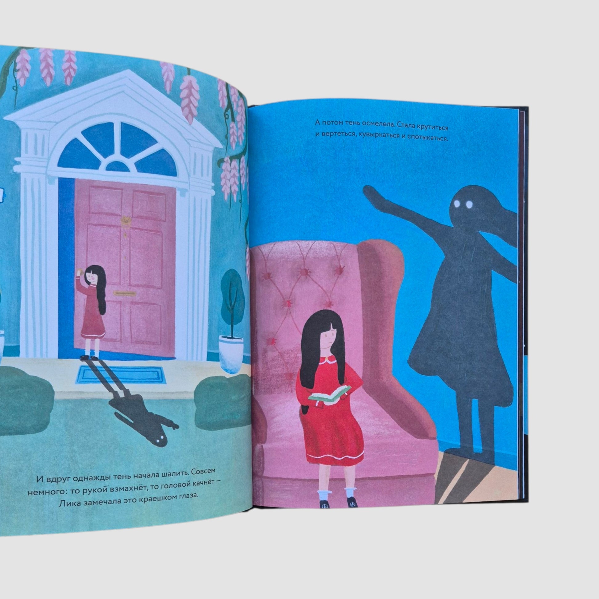 В каждом из нас есть особое место — очень тайное и сокровенное. В этом тайном месте любят играть тени. Лика никогда особенно не задумывалась о своей тени, пока однажды та не начала вести себя очень странно. Когда Лика махала рукой, тень поднимала ногу. Когда Лика садилась, тень вставала. Лика пыталась убежать, спрятаться и сделаться меньше, но тень лишь становилась больше. Пока не выросла такой большой, что подхватила и унесла Лику в волшебную сумрачную страну, в загадочный цирк теней. Чтобы найти дорогу обратно, Лике придётся по-настоящему увидеть свою тень и найти с ней общий язык.